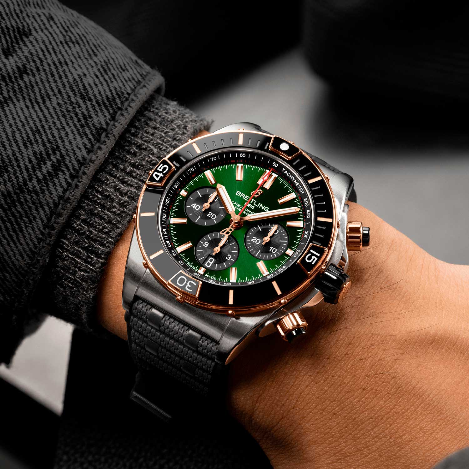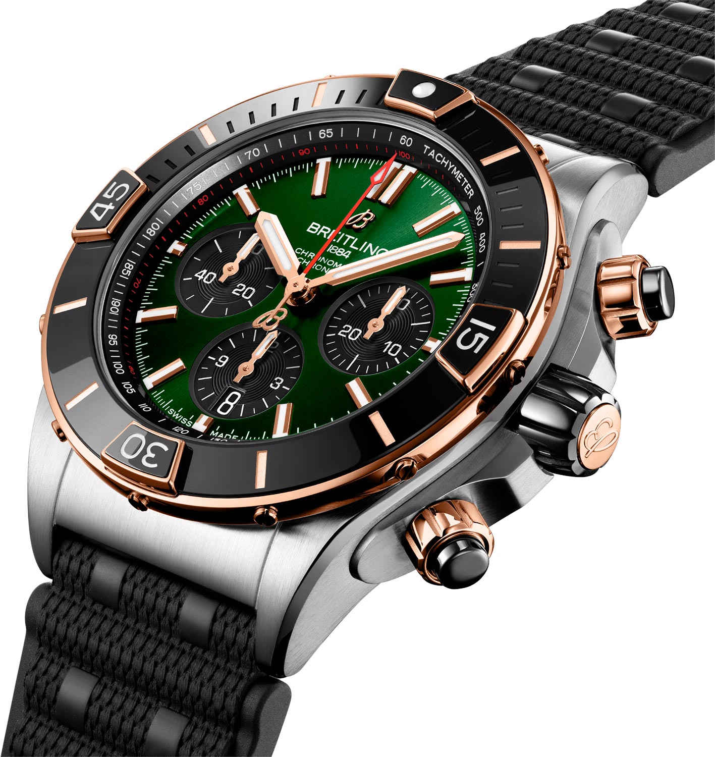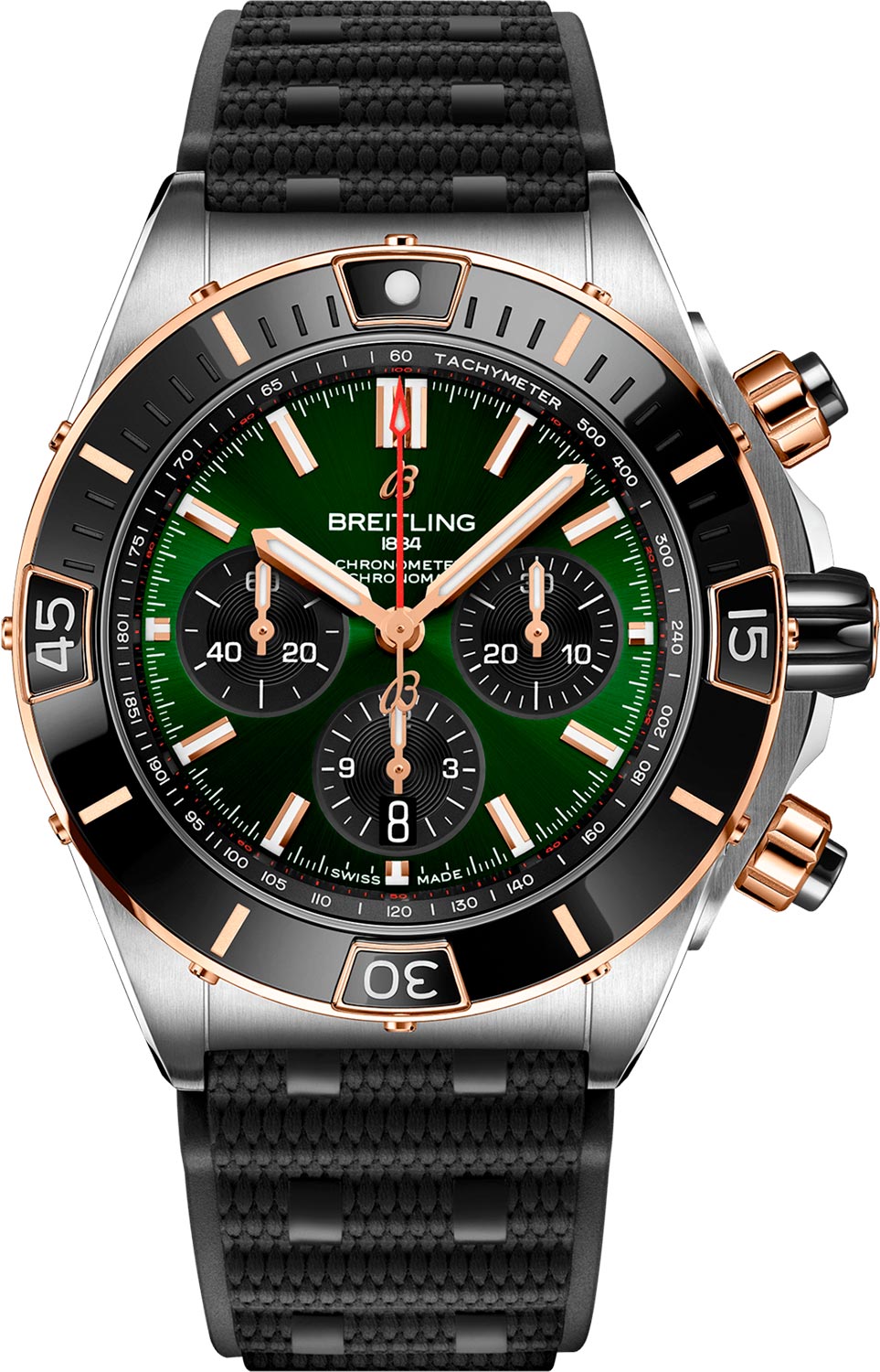 Точность швейцарского механизма не оставит равнодушными тех, кто ценит каждую секунду своего времени.Super Chronomat B01. Вдохновением для создания модели послужила модель Chronomat 80-х годов, которая была разработана Breitling для летчиков пилотажной эскадрильи. В мануфактурном швейцарском механизме 47 камней,частота 28800 полуколебаний в час. Запас хода примерно 70 часов. Возможность ручного завода.Хронометр сертифицирован C.O.S.C.Часы-хронограф