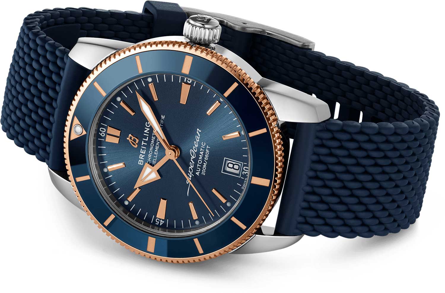 Идеальное сочетание надежности и точности — часы для активных и успешных мужчин. Superocean Heritage B20. Дизайн модели вдохновлен часами SuperOcean 50-х годов. В мануфактурном швейцарском механизме 26 камней, частота 28800 полуколебаний в час. Запас хода примерно 70 часов. Возможность ручного завода. Хронометр сертифицирован C.O.S.C. Циферблат с метками в виде штрихов выполнен по технологии Sunray (солнечные лучи) и защищен прочным сапфировым стеклом. Антибликовое покрытие стекла позволит вам без труда узнать время даже в самый солнечный день. Окошко даты находится в положении 6 часов. Безель с керамической вставкой выполнен из розового золота 18К и вращается в одном направлении. Завинчивающиеся задняя крышка и заводная головка с двойным уплотнением. Каучуковый ремешок с текстурой миланского плетения и раскладывающейся застежкой.