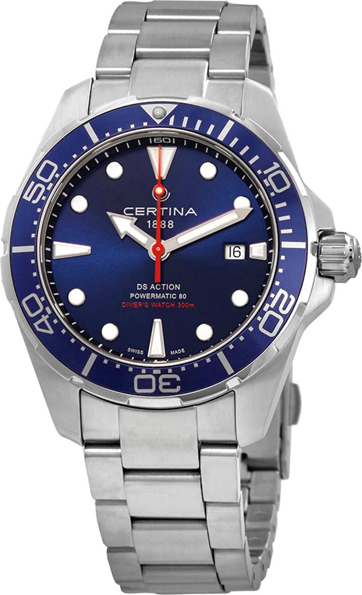 Стиль и практичность этих часов придутся по душе мужчине, который смело идет по жизни и не боится экспериментировать. Автоматические оригинальные наручные часы DS Action Diver Powermatic 80. Круглый стальной корпус. Вращающийся безель. Циферблат выполнен по технологии Sunray (солнечные лучи). Мечевидные стрелки в стиле Sword. Накладные метки в виде точек и штрихов. Метки и стрелки с люминесцентным покрытием, которое светится в темноте после непродолжительной зарядки на свету. Окошко даты находится в положении 3 часа. Рифленая заводная головка с защитой. Надежный стальной браслет с раскладывающейся застежкой.
