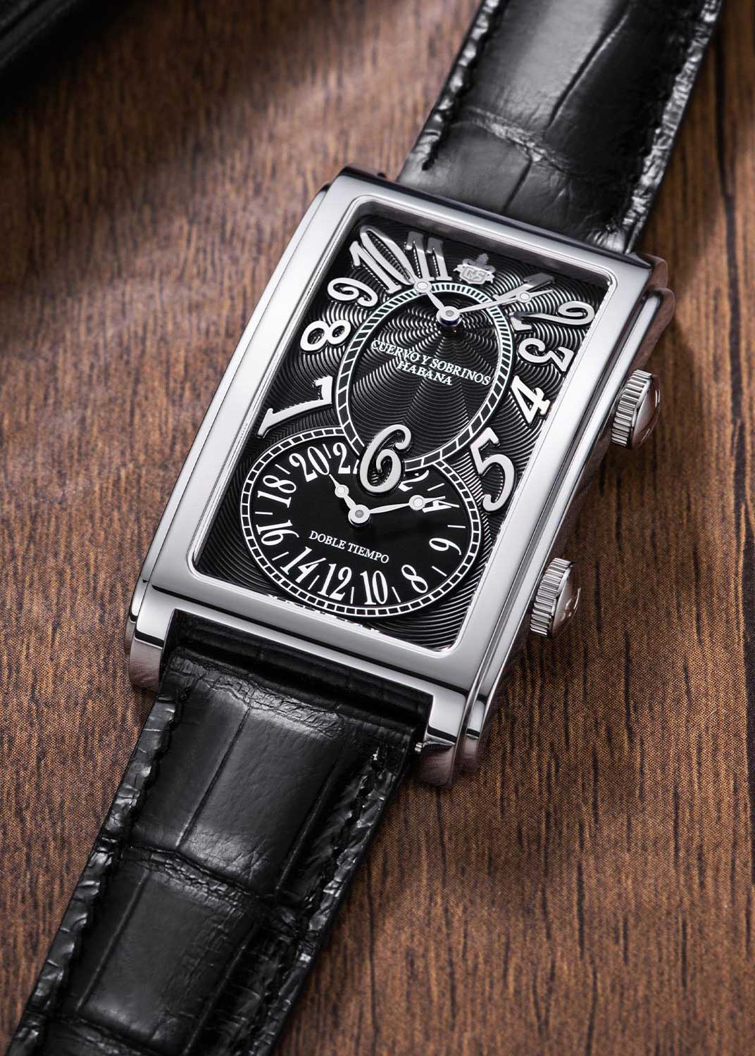 Prominente Iconico Doble Tiempo. Мужские часы. В механизме 25 камней, частота 28800 полуколебаний в час. Запас хода 44 часа. Ротор механизма украшен гравировкой. Второй часовой пояс в 24-х часовом формате времени.