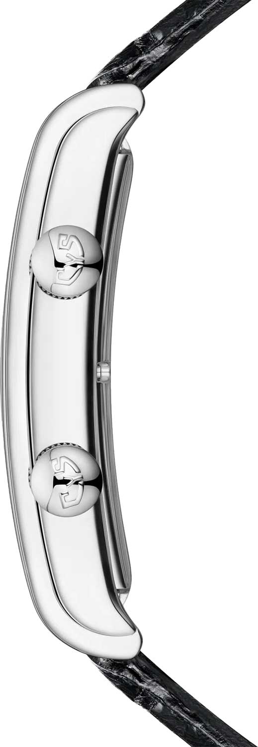 Прямоугольный эргономичный корпус из полированной стали. Гильошированный циферблат защищен прочным сапфировым стеклом. Метки в виде арабских цифр. Стрелки с люминесцентным покрытием выполнены в стиле Breguet.