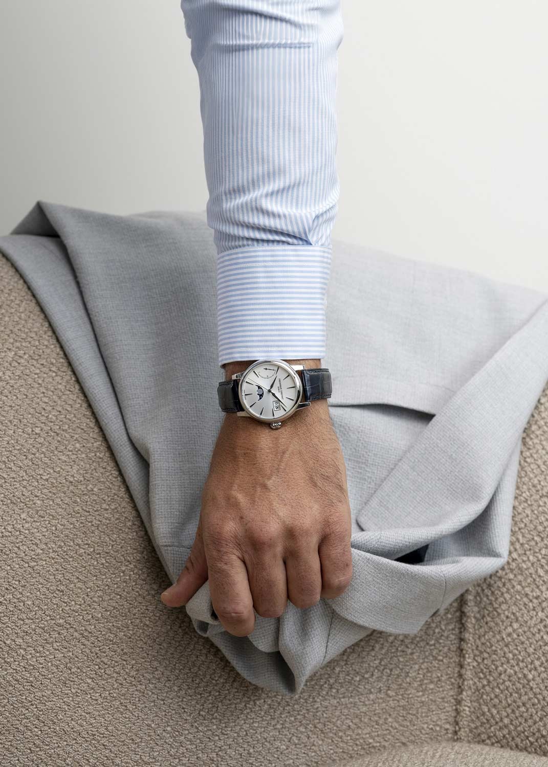 Мужские наручные часы Manufacture Classic Power Reserve Big Date. В механизме 32 камня, частота 28800 полуколебаний в час. Ретроградный указатель запаса хода до 50 часов.