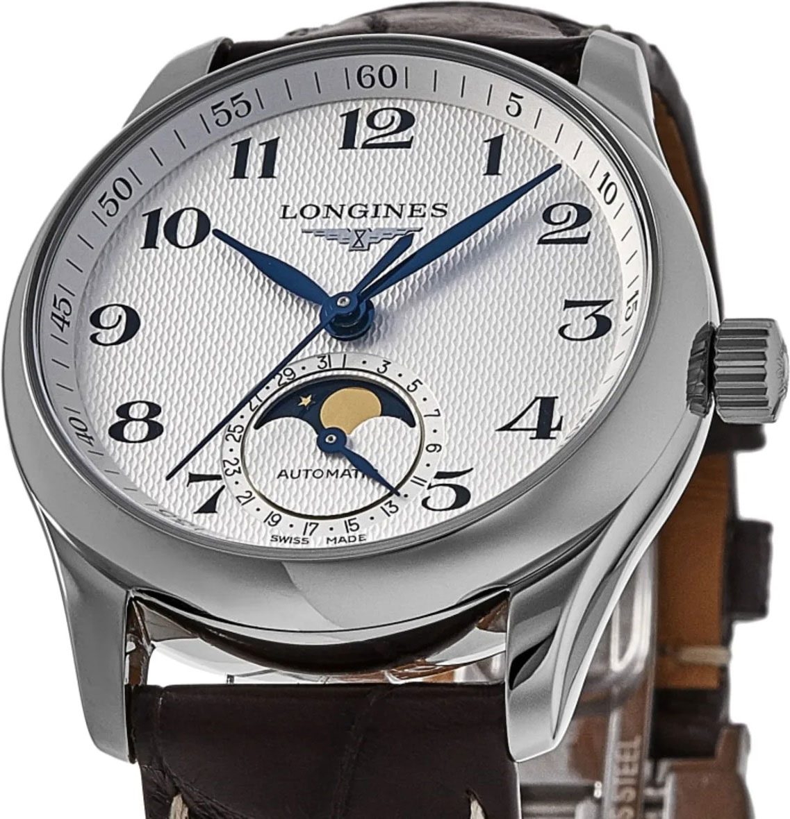 Женские автоматические наручные часы Master Collection Moonphase. Эксклюзивный механизм Longines с частотой 25200 полуколебаний в час. Запас хода примерно 72 часа.