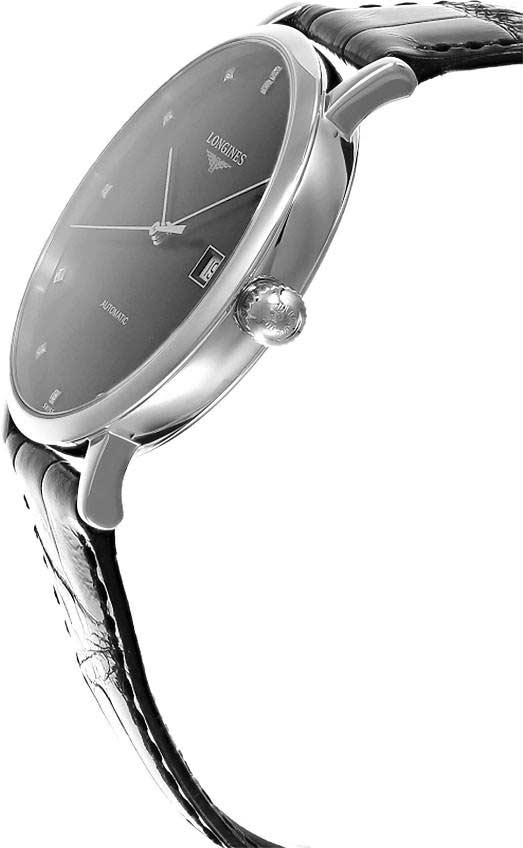 Женские наручные часы с круглым стальным корпусом. Эксклюзивный механизм Longines с частотой 25200 полуколебаний в час. Запас хода примерно 72 часа. Матовый циферблат с метками, инкрустированными бриллиантами, защищен прочным сапфировым стеклом. Накладные метки в виде штрихов.