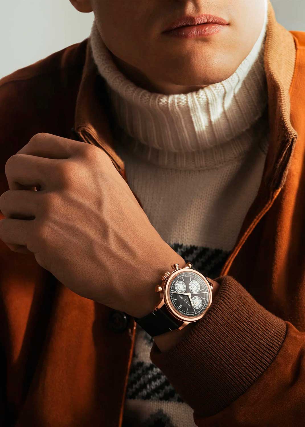 Механические мужские часы-хронограф с секундомером и тахиметром Millesime Tri-Compax Chronograph. В механизме 25 камней, частота 28800 полуколебаний в час. Запас хода 62 часа. Круглый стальной корпус с сатинированной и полированной отделкой. W-образный ротор.