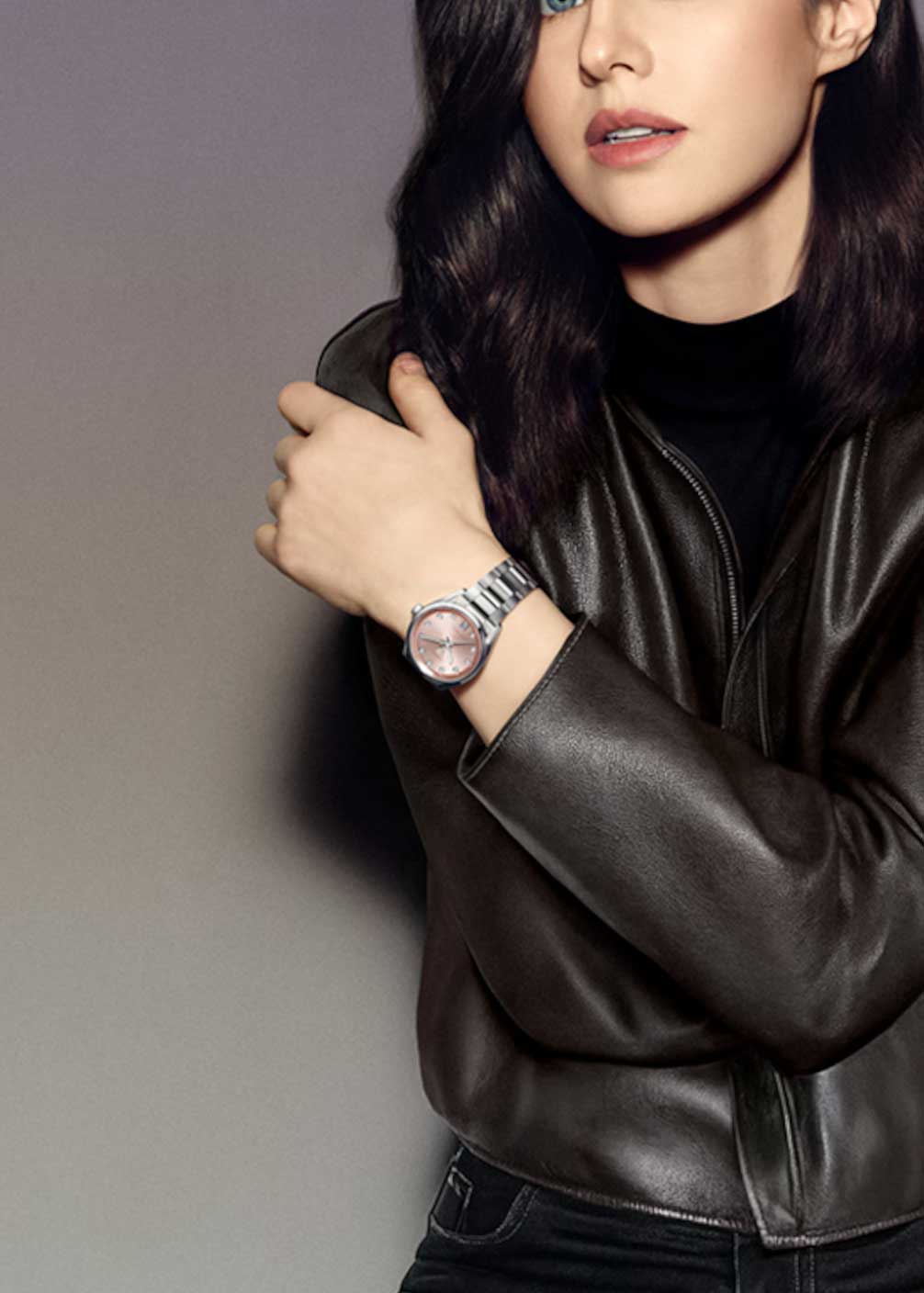 Циферблат выполнен по технологии Sunray (солнечные лучи) и защищен прочным сапфировым стеклом. Накладные метки в виде точек, инкрустированных бриллиантами. Метки и стрелки с люминесцентным покрытием Super-LumiNova, которое светится в темноте после непродолжительной зарядки на свету. Окошко даты находится в положении 6 часов.