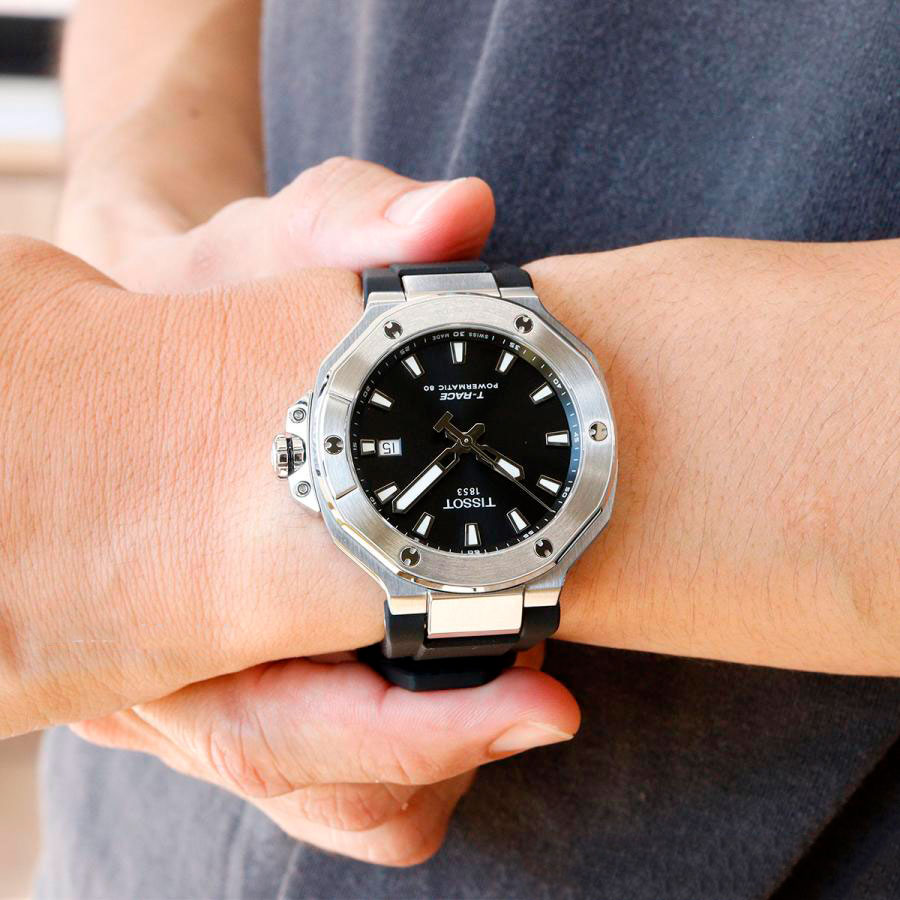 Практичные часы на силиконовом ремешке станут идеальным выбором для мужчин, которые любят активный образ жизни. Дизайн часов отражает динамичный характер мотоспорта и эмоций, которые он дает. Автоматические наручные часы T-Race Powermatic 80. В механизме 23 камня, частота 21600 полуколебаний в час. Запас хода 80 часов. Запатентованная пружина баланса Nivachron. Стальной корпус c сатинированной поверхностью. Накладные метки в виде штрихов. Метки и стрелки с люминесцентным покрытием, которое светится в темноте после непродолжительной зарядки на свету. Окошко даты находится в положении 3 часа. Рифленая заводная головка. Прозрачная задняя крышка. Силиконовый ремешок с классической застежкой и системой быстрой замены.