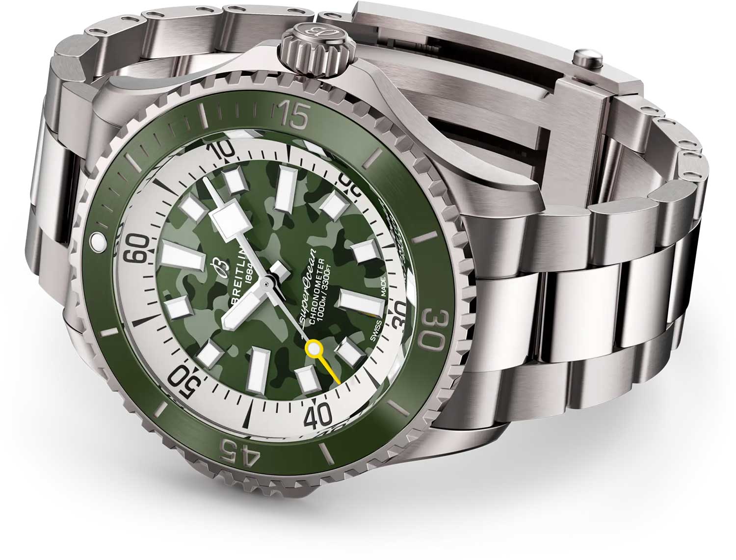 вставкой и блокировкой (специальный замок находится в левой части корпуса). Заводная головка с защитой и двойной прокладкой. Завинчивающаяся задняя крышка. Браслет с раскладывающейся застежкой и системой регулировки длины.