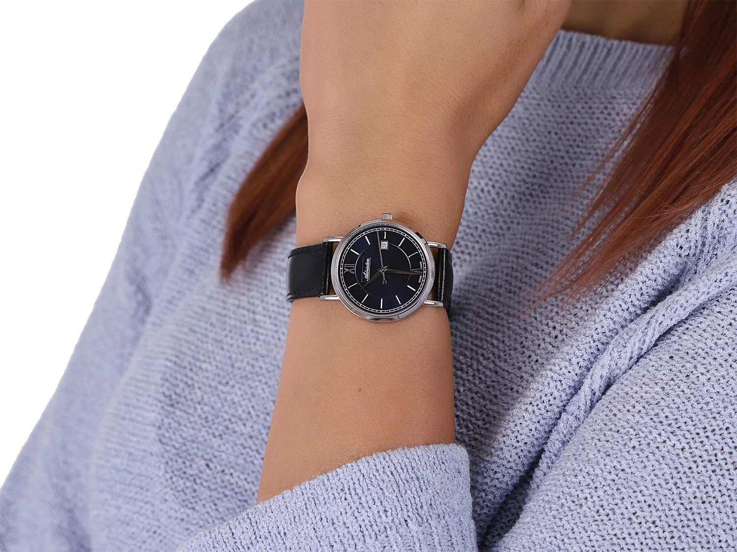 Элегантный классический дизайн - прекрасный выбор деловых и успешных женщин. Pairs. Мужские часы с круглым корпусом. Циферблат выполнен по технологии Sunray (солнечные лучи). Метки в виде штрихов и двух римских цифр. Окошко даты. Рифленая заводная головка. Кожаный ремешок с классической застежкой. Имеется мужской вариант модели A1294.5264Q. Производитель оставляет за собой право вносить изменения во внешний вид часов.