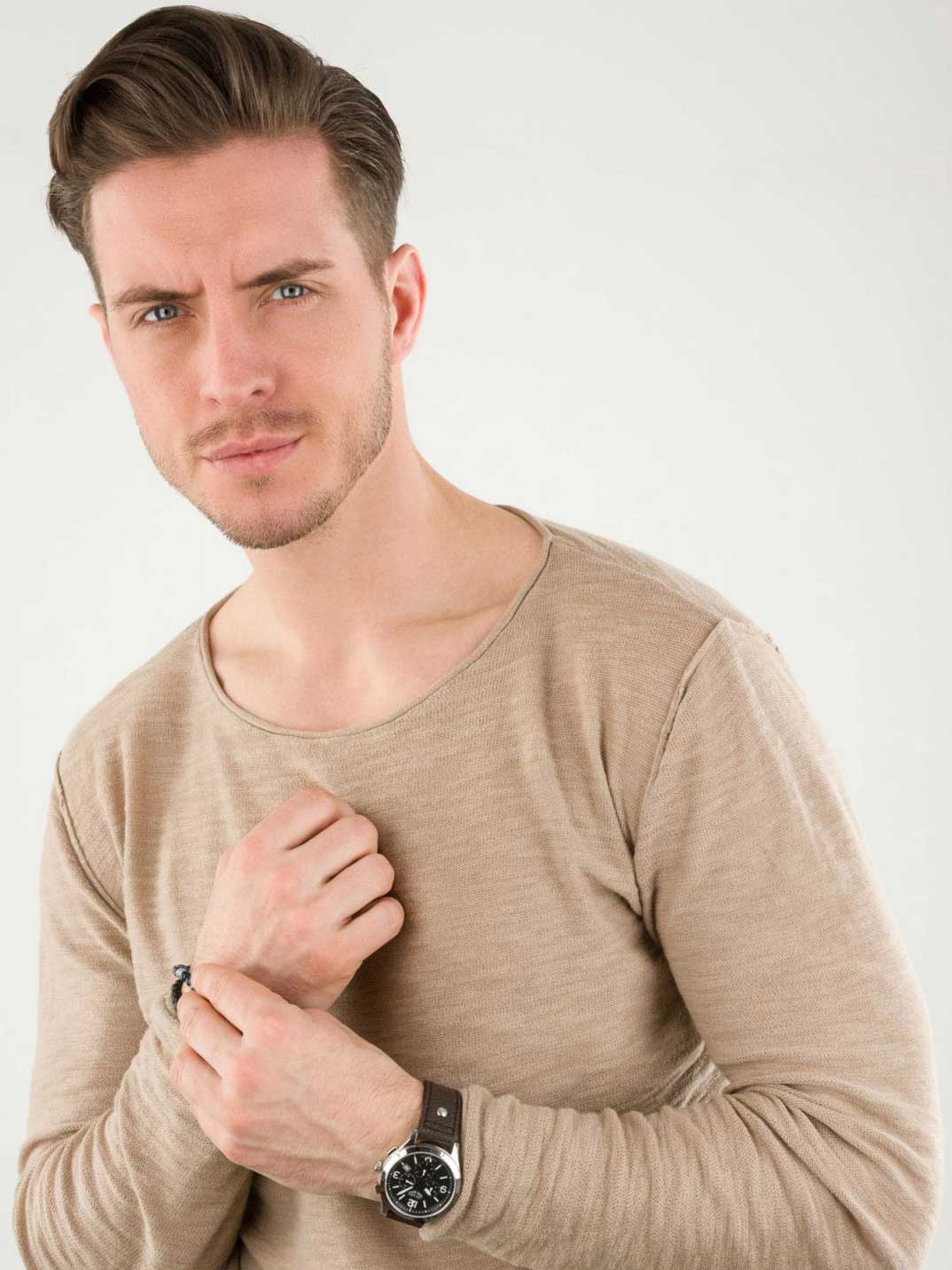 Стильные и функциональные часы в стиле авиаторов. С ними высокие результаты гарантированы. Практичные мужские часы Aviation. Часы-хронограф с секундомером. Круглый стальной корпус. Метки в виде штрихов и арабских цифр. Рифленая заводная головка. Кожаный ремешок с классической застежкой.