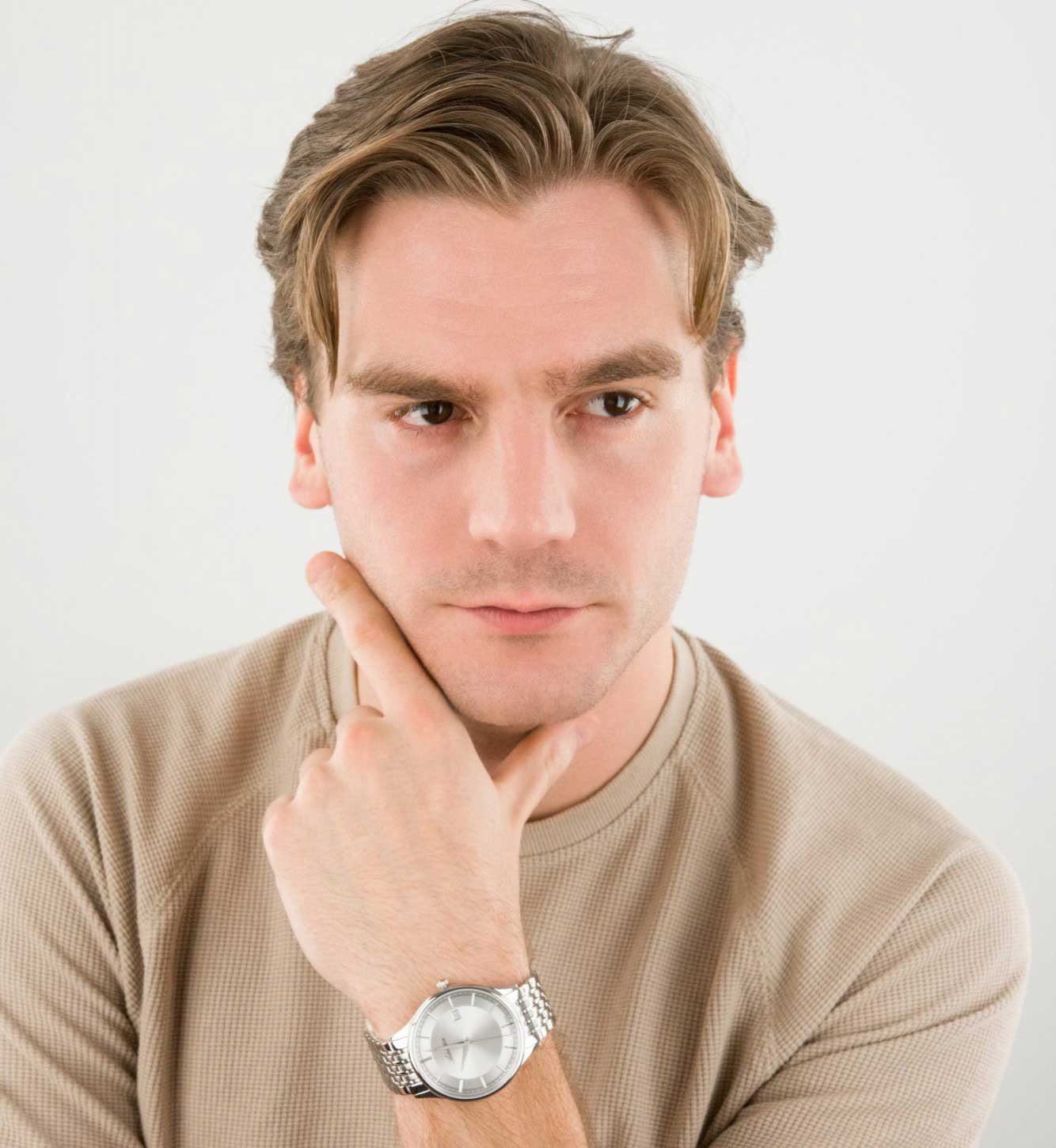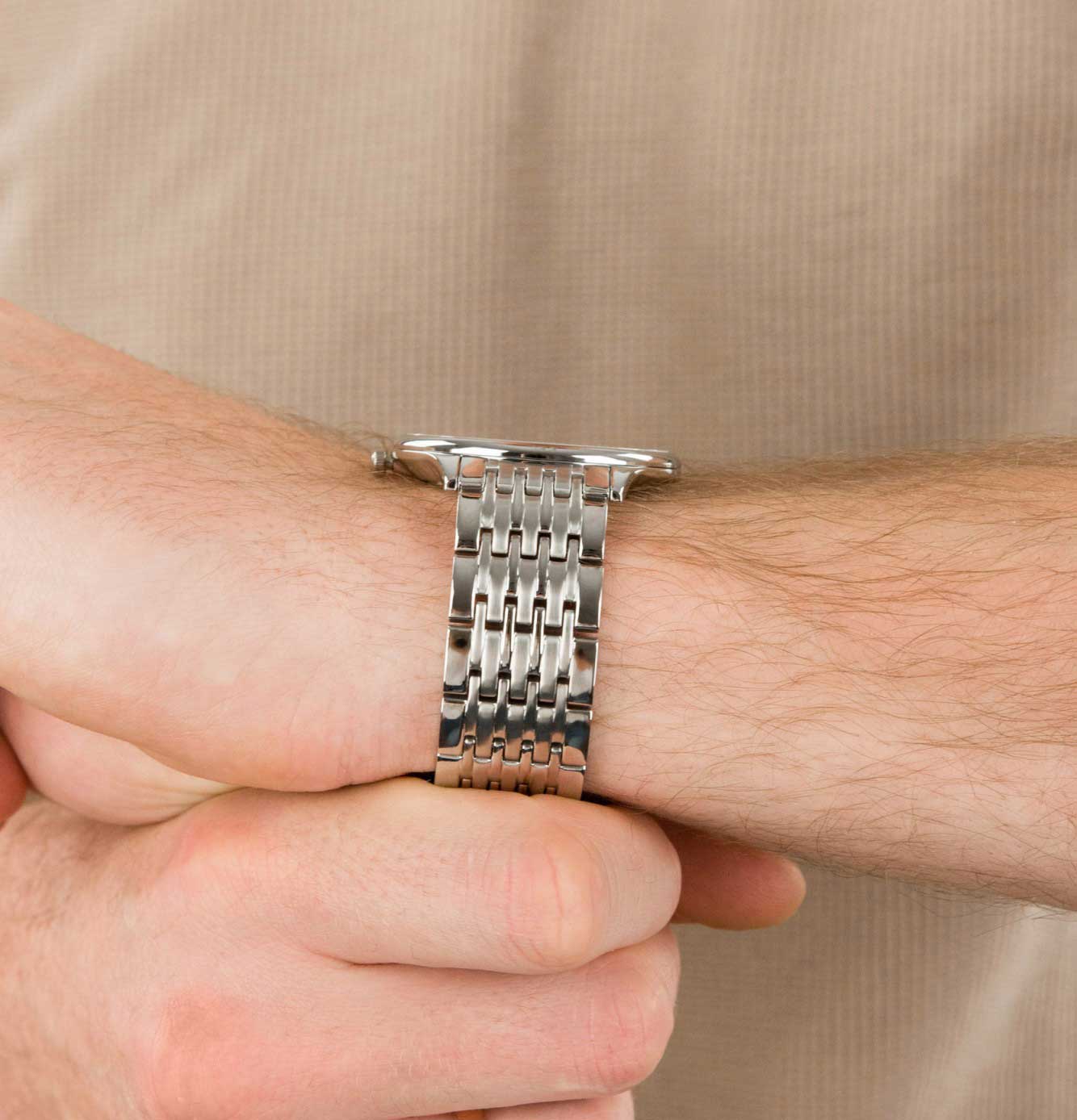 Безукоризненная классика станет именно тем штрихом, которого не хватало для совершенства. Мужские классические часы Premiere. Круглый стальной корпус. Метки в виде штрихов. Конусные стрелки. Окошко даты. Рифленая заводная головка. Стальной браслет с раскладывающейся застежкой.