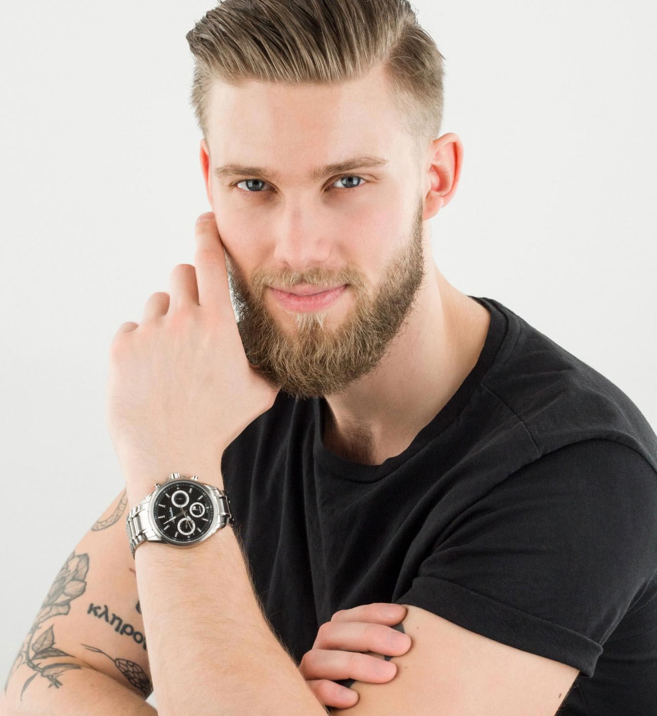 Практичный дизайн этих функциональных часов демонстрируют истинно мужскую, сильную и вольную натуру. Многофункциональные мужские часы Premiere с массивным круглым корпусом из стали. Двухуровневый циферблат. Метки в виде крупных штрихов. Дата и день недели вынесены на отдельные циферблаты. Заводная головка с защитой. Стальной браслет с раскладывающейся застежкой.