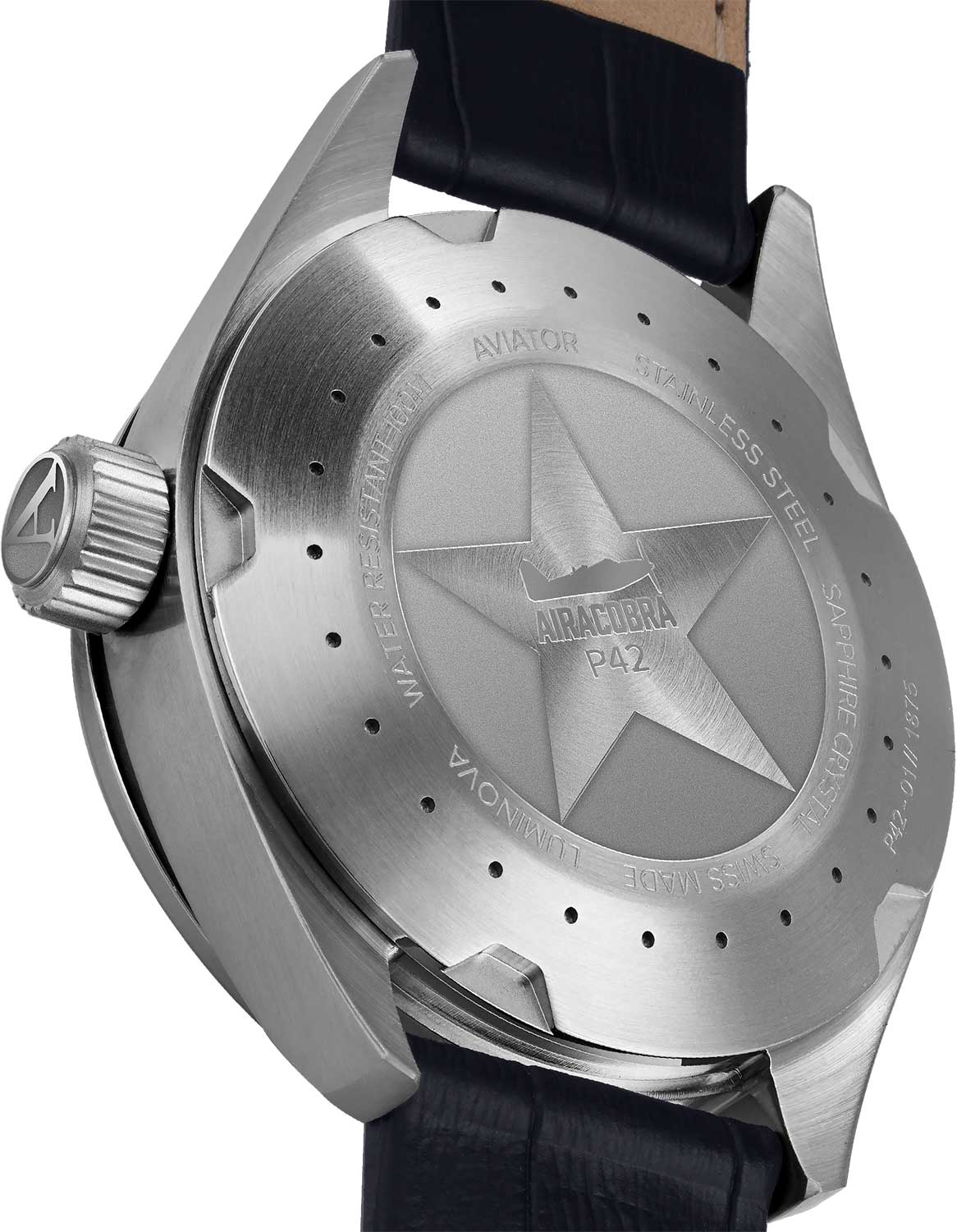 Минималистический дизайн циферблата придает часам универсальный вид, позволяя их сочетать как со строгой, так и с повседневной одеждой. Airacobra. Завинчивающаяся задняя крышка.