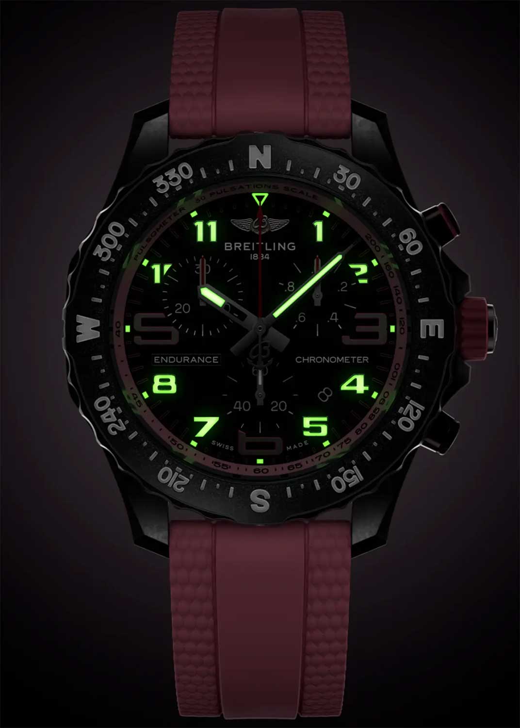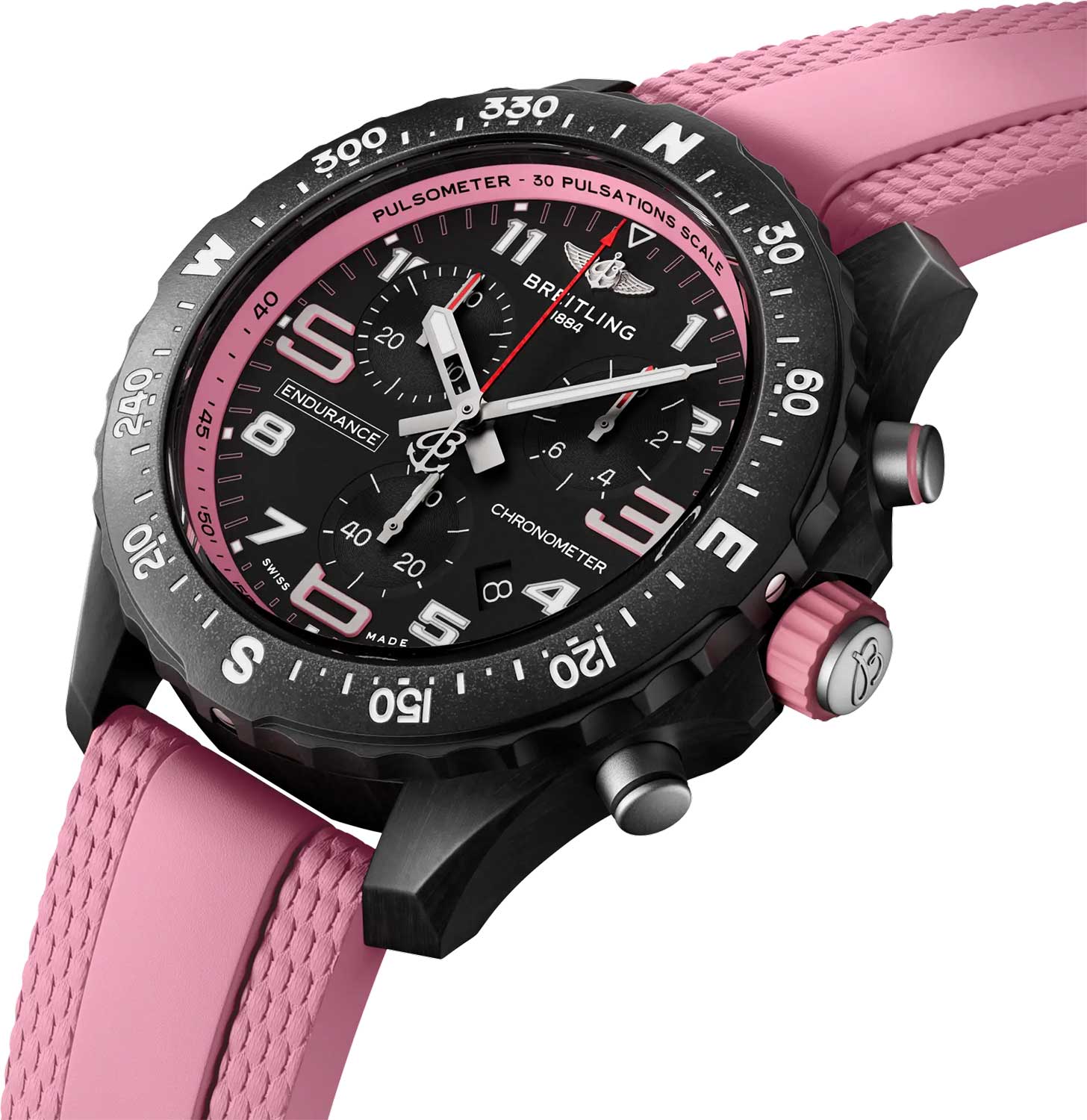 Endurance Pro. Женские часы. В высокоточном термокомпенсированном механизме SuperQuartz™ 6 камней. Хронометр сертифицирован C.O.S.C. Корпус и застежка выполнены из запатентованного сверхлегкого полимера Breitlight®, который обладает низкой магнитной восприимчивостью, а также высокой стойкостью к царапинам, износу и коррозии.