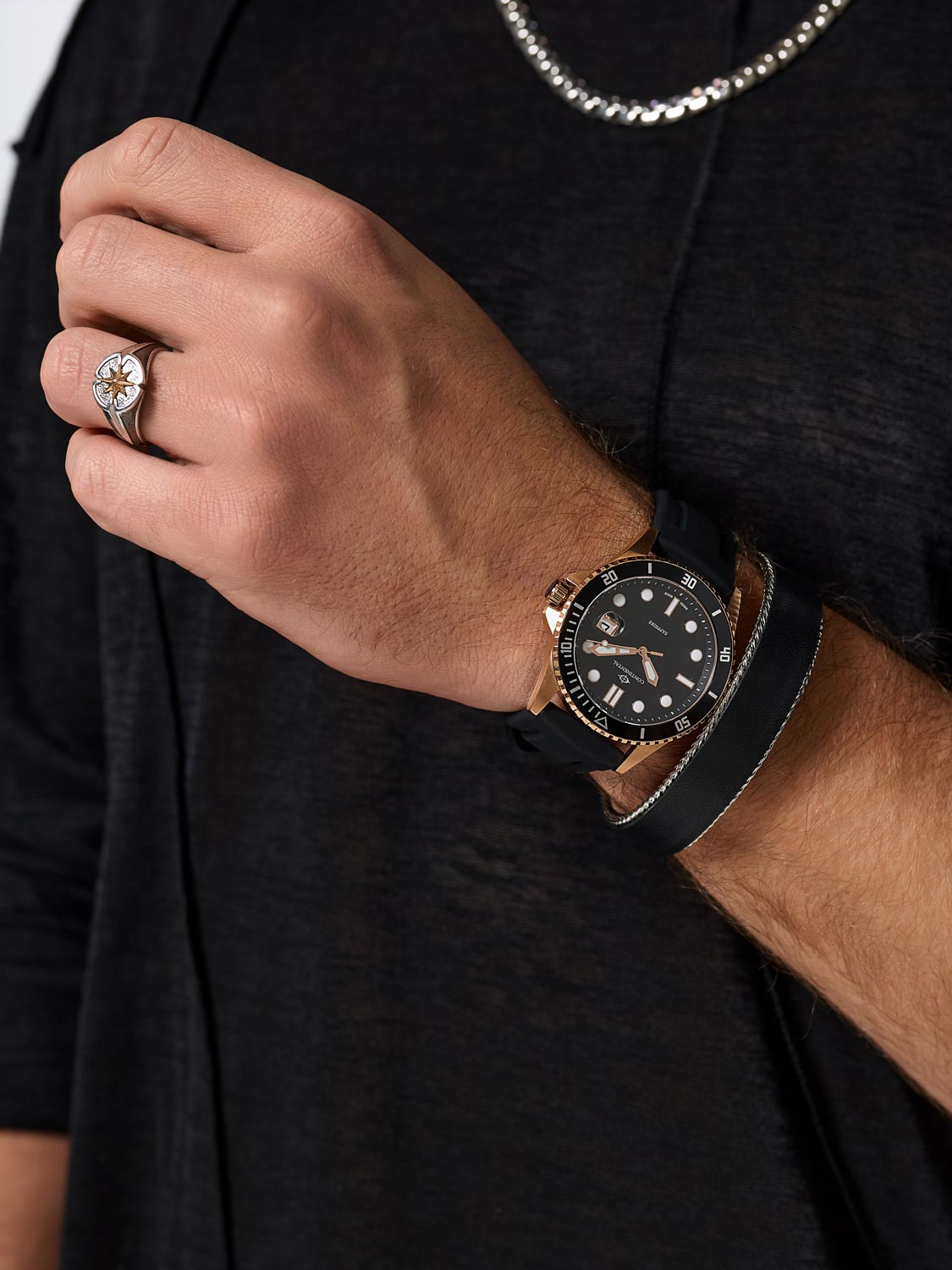 Точность швейцарского механизма позволит вам держать время под контролем. Gents. Мужские часы. Функция индикации заряда (EOL). Метки в виде точек и штрихов. Окошко даты с увеличительным стеклом. Вращающийся безель. Заводная головка с защитой. Силиконовый ремешок.