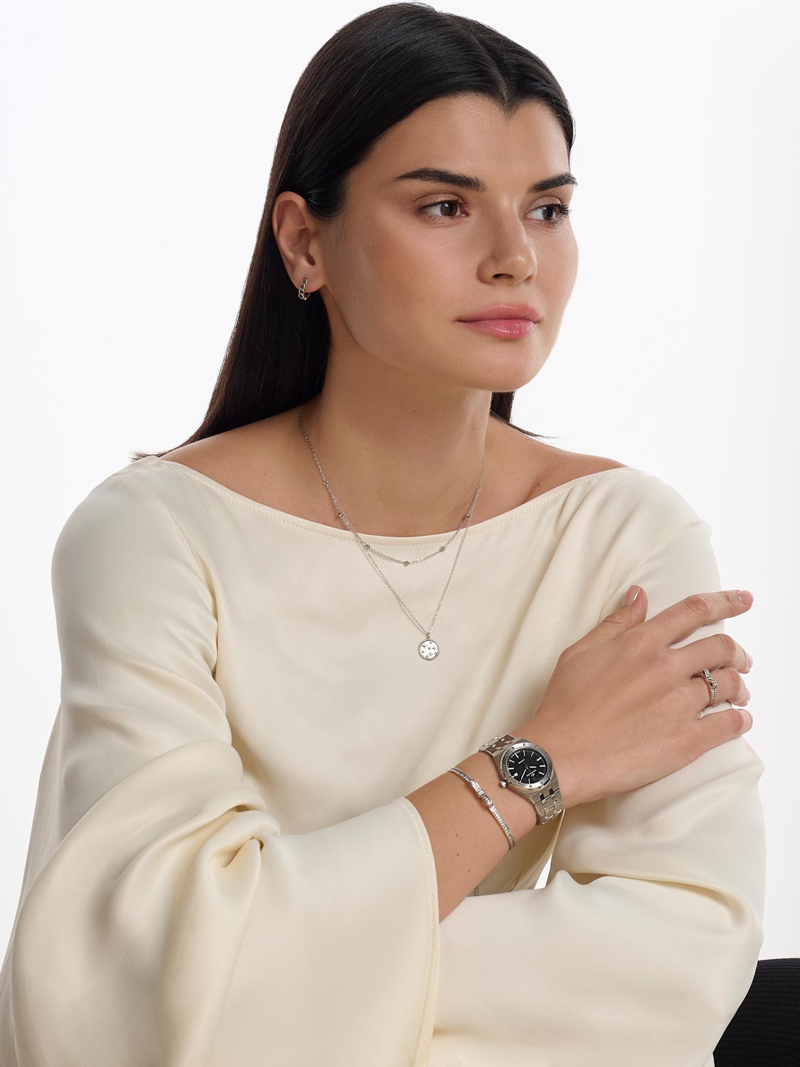 Гармоничные линии и сдержанный дизайн этих часов подчеркнут ваш стиль. Pairwatches. Женские наручные часы. Функция индикации заряда (EOL). Стальной корпус c сатинированной поверхностью. Безель украшен стильными винтами. Циферблат украшен узором Clous de Paris. Заостренные прямоугольные стрелки в стиле Baton. Метки в виде штрихов, 12-ти часовая метка в виде римской цифры. Метки и стрелки с люминесцентным покрытием, которое светится в темноте после непродолжительной зарядки на свету. Окошко даты находится в положении 3 часа. Рифленая заводная головка. Надежный стальной браслет. Имеется мужской вариант модели 21501-GD101410.