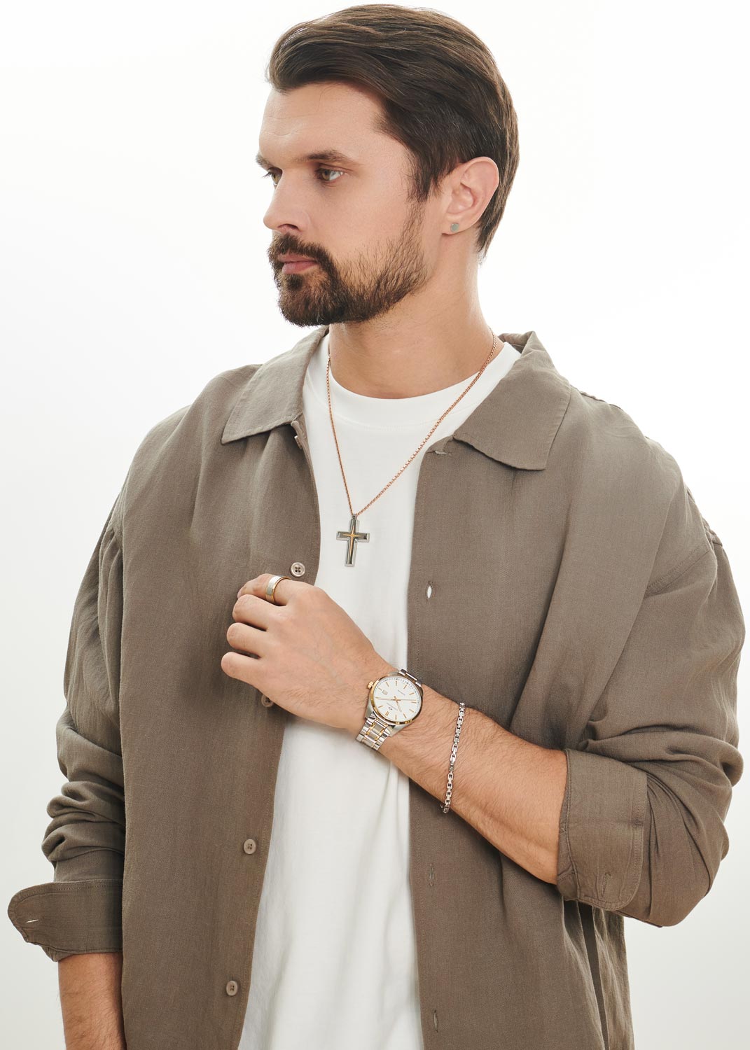 Классический, сдержанный дизайн и практичность - ваш идеальный помощник и секретарь времени. Мужские часы с круглым стальным корпусом. Метки в виде штрихов. Окошко даты в положении 3 часа. Рифленая заводная головка. Стальной браслет.