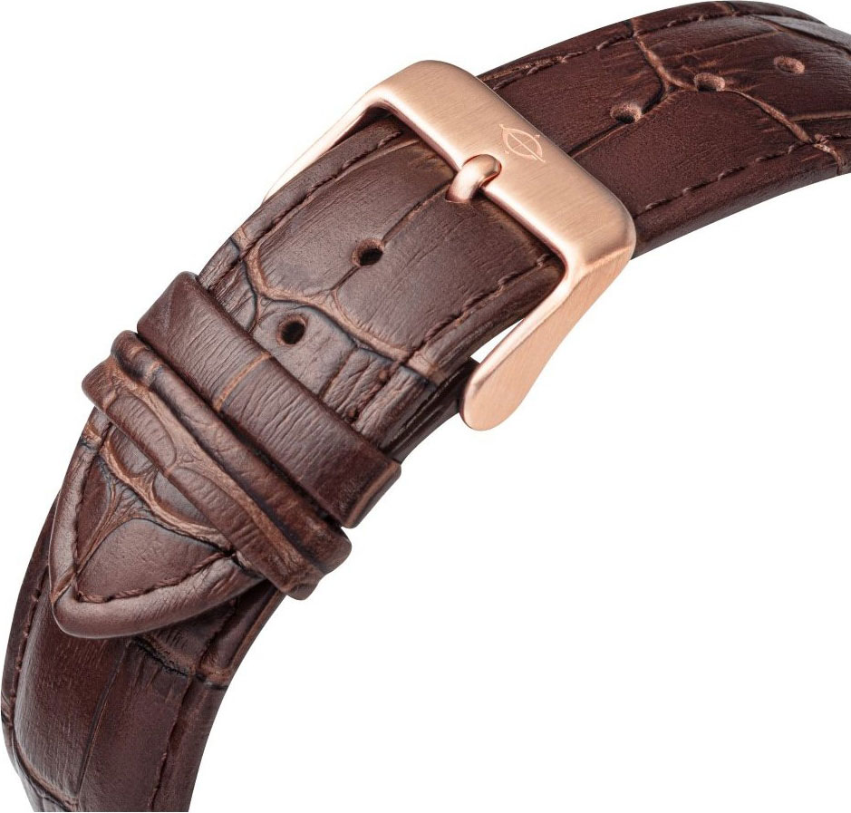 Мужские наручные часы со стальным корпусом. Функция индикации заряда (EOL). Метки в виде штрихов и арабской цифры 12. Окошко даты в положении 3 часа. Рифленая заводная головка. Ремешок из натуральной кожи с классической застежкой. Имеется женский вариант модели 24451-LD856120.