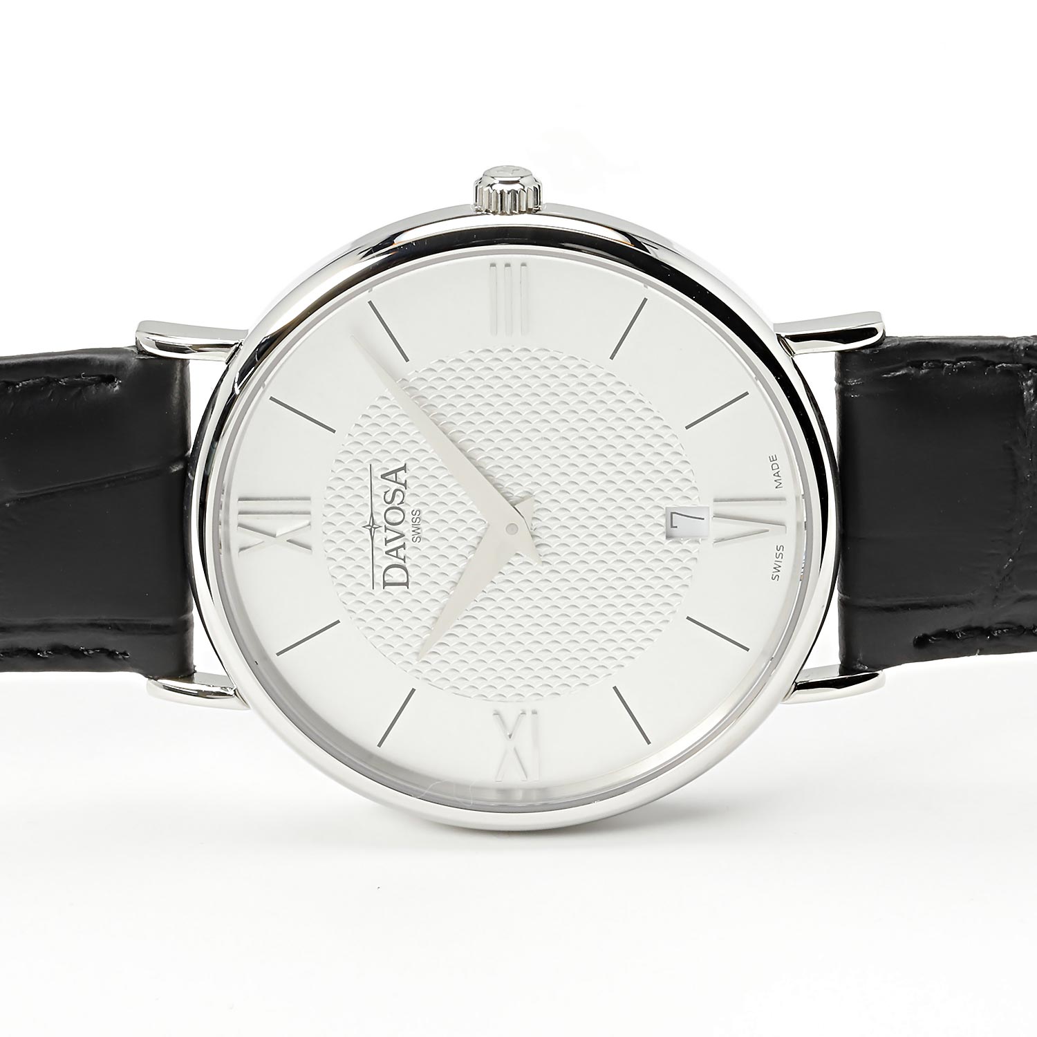 Классический стиль, тонкий элегантный корпус, удобство и надежность безупречно сочетаются в этой модели часов. Pianos II. Ультратонкие швейцарские мужские часы в круглом корпусе из нержавеющей стали. Циферблат защищен устойчивым к царапинам сапфировым стеклом и украшен в центре декоративным рельефным узором. Окошко даты находится в положении 6 часов. Метки в виде штрихов и римских цифр. Рифленая заводная головка. Удобный кожаный ремешок с классической застежкой. Имеется женский вариант модели DAV.16756515.