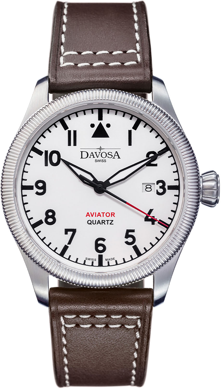 Выполненная в стиле авиационных часов, эта модель станет отличным вариантом на каждый день. Aviator Белый циферблат с арабскими цифрами и люминесцентными стрелками. Кожаный коричневый ремешок.