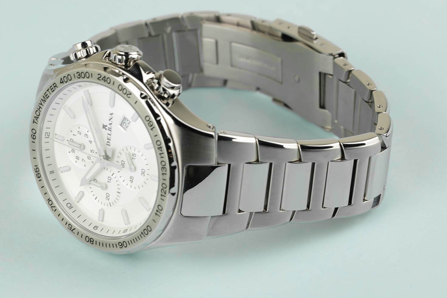 Отличные функциональные мужские часы. Идеальны на все случаи жизни! Barcelona. Часы-хронограф с секундомером и тахиметром. Секундомер с точностью показаний 1/10с и временем измерения 30мин. Циферблат с накладными метками в виде штрихов. Метки и стрелки с люминесцентным покрытием, которое светится в темноте после непродолжительной зарядки на свету. Окошко даты находится в положении 4 часа. Заводная головка с защитой. Батарейка рассчитана на 54 месяца. Браслет с раскладывающейся застежкой.