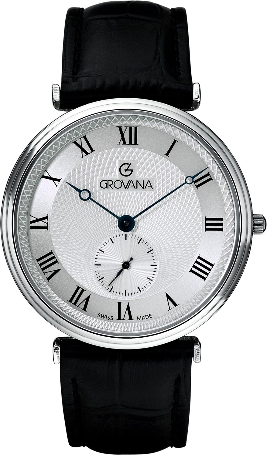 Наручные мужские классические часы. Круглый стальной корпус с двойным ободком. Гильошированный циферблат с римскими цифрами. Стрелки в стиле Breguet.