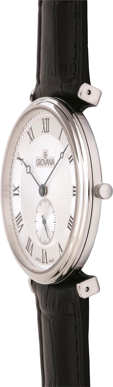 Секундная стрелка вынесена на отдельный циферблат. Сапфировое стекло. Рифленая заводная головка. Удобный кожаный ремешок. Имеется женский вариант модели G3276.1532.