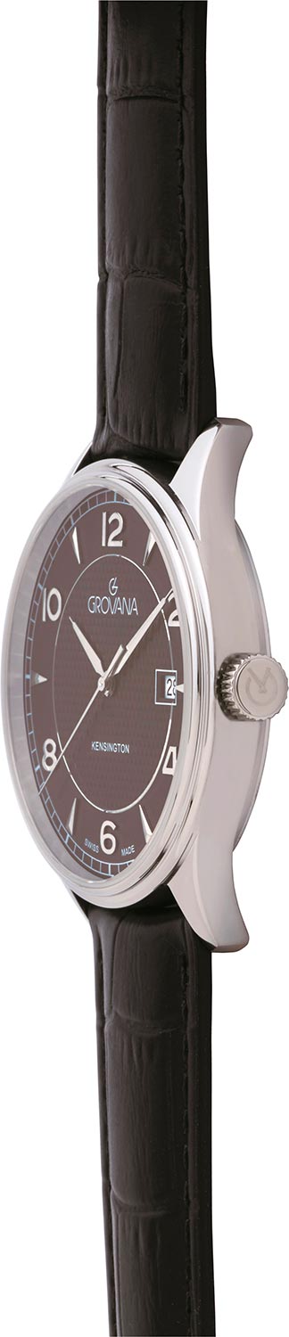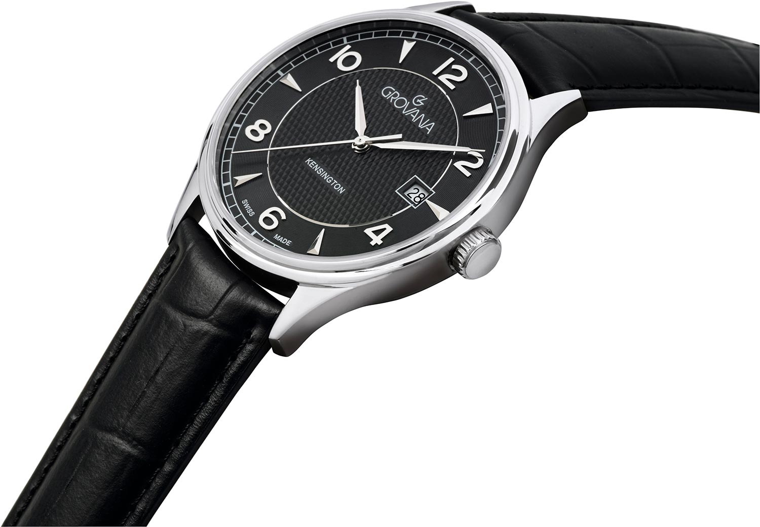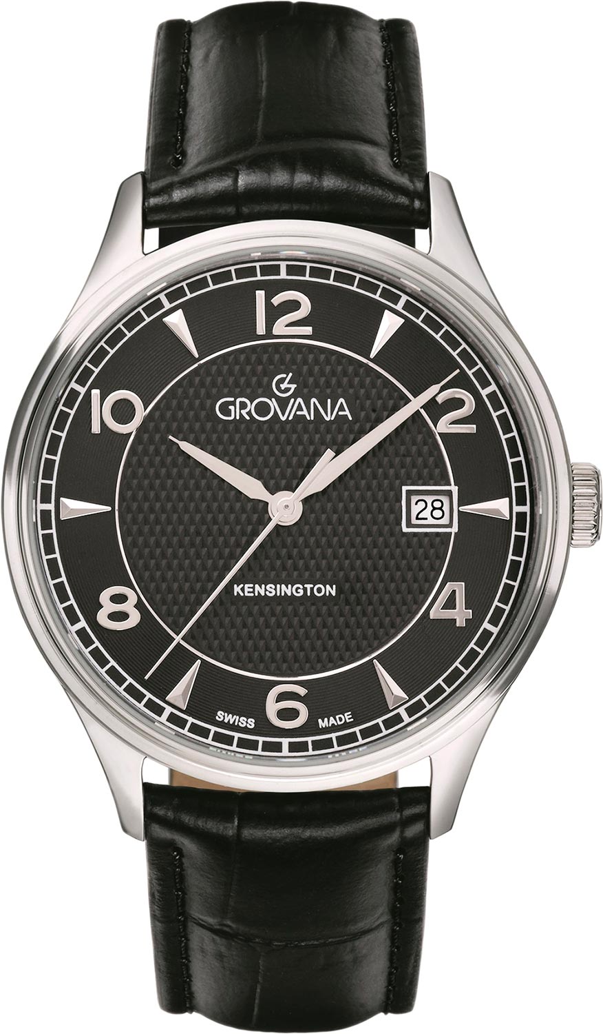 Классические наручные мужские часы Kensington Classic. Круглый стальной корпус с полированной отделкой. Двойной циферблат, центральная часть с узором Clous de Paris, внешняя с круговым линейным узором.