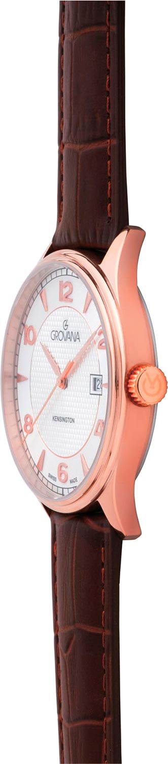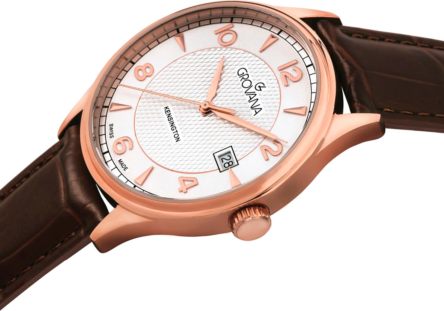 Классические наручные мужские часы Kensington Classic. Круглый стальной корпус с полированной отделкой. Двойной циферблат, центральная часть с узором Clous de Paris, внешняя с круговым линейным узором.