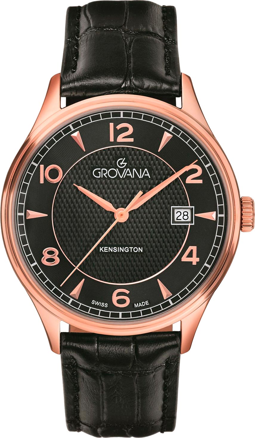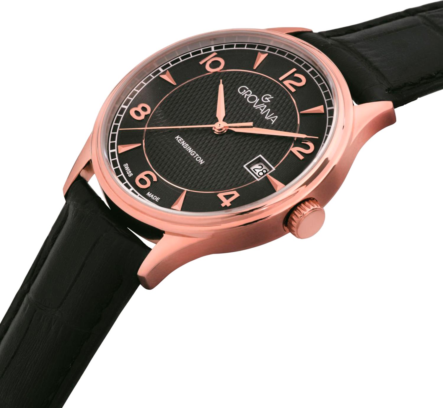 Классические наручные мужские часы Kensington Classic. Круглый стальной корпус с полированной отделкой. Двойной циферблат, центральная часть с узором Clous de Paris, внешняя с круговым линейным узором.
