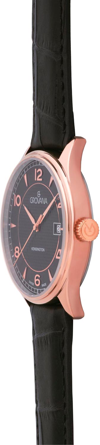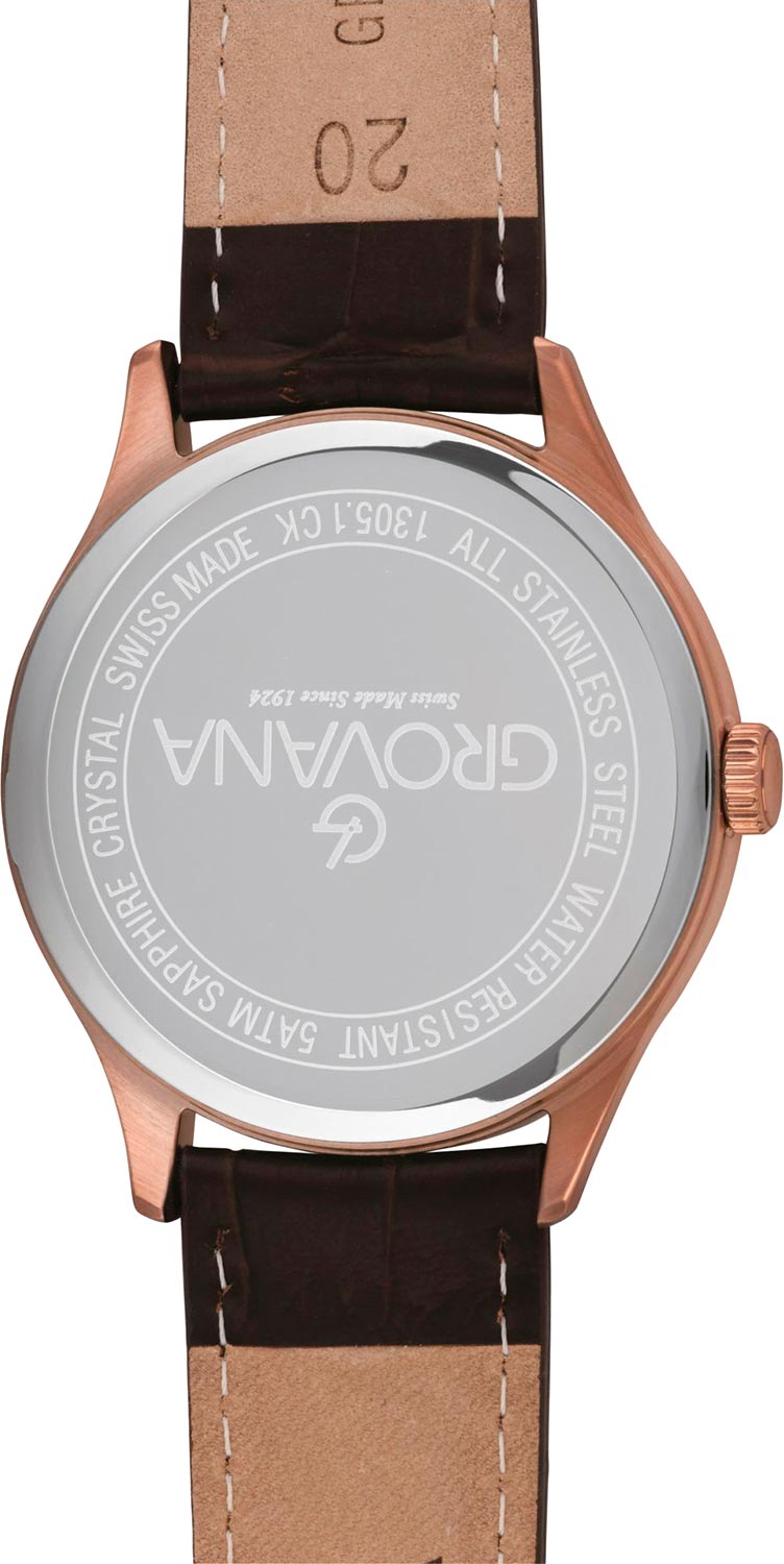 Накладные метки в виде арабских цифр и штрихов. Острые стрелки в стиле Alpha. Окошко даты находится в положении 3 часа. Рифленая заводная головка. Удобный кожаный ремешок.