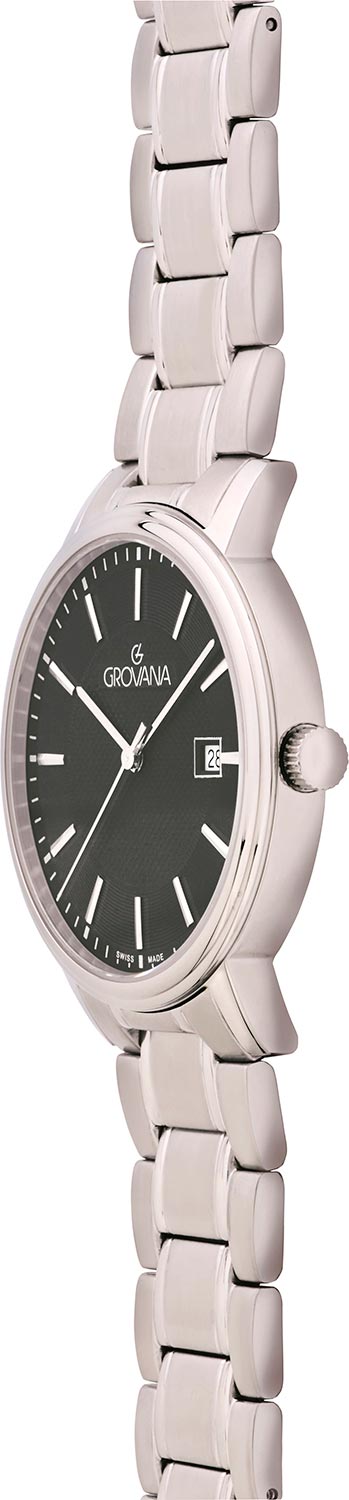 Накладные метки в виде арабских цифр. Заостренные прямоугольные стрелки в стиле Baton. Окошко даты находится в положении 3 часа. Рифленая заводная головка. Стальной браслет с раскладывающейся застежкой. Имеется женский вариант модели G5550.1131.