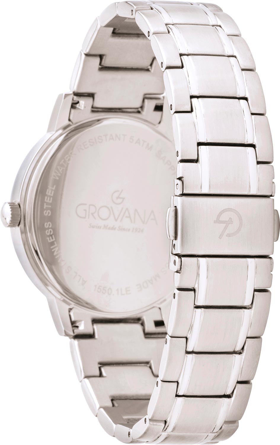 Накладные метки в виде штрихов. Заостренные прямоугольные стрелки в стиле Baton. Окошко даты находится в положении 3 часа. Рифленая заводная головка. Стальной браслет с раскладывающейся застежкой.