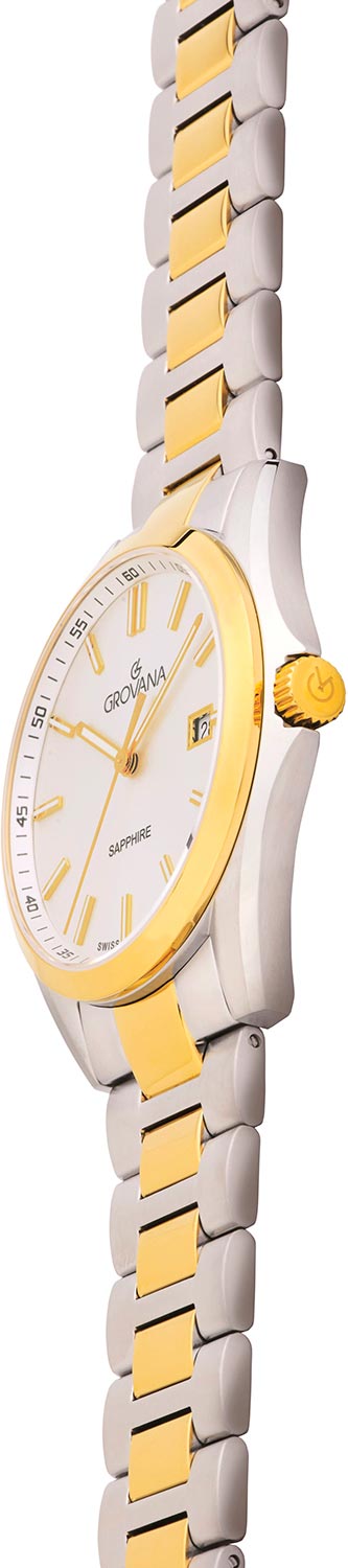 Метки и стрелки с люминесцентным покрытием, которое светится в темноте после непродолжительной зарядки на свету. Окошко даты находится в положении 3 часа. Рифленая заводная головка с защитой. Стальной браслет с раскладывающейся застежкой.