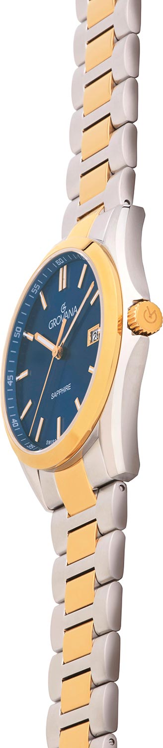 Метки и стрелки с люминесцентным покрытием, которое светится в темноте после непродолжительной зарядки на свету. Окошко даты находится в положении 3 часа. Рифленая заводная головка с защитой. Стальной браслет с раскладывающейся застежкой.