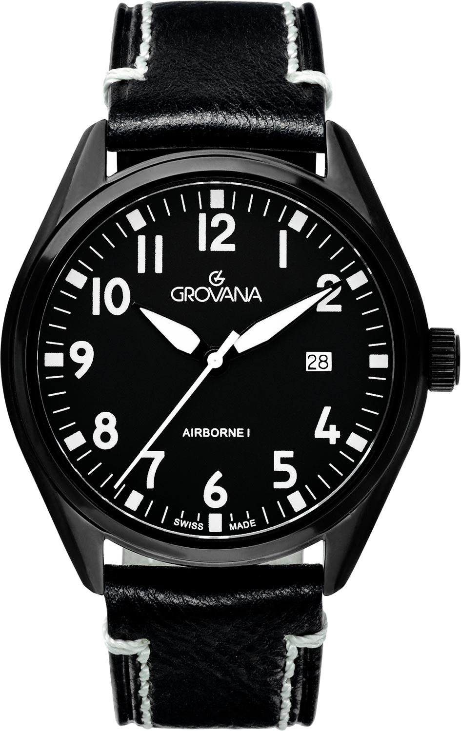 Мужские наручные авиаторские часы. Круглый стальной корпус. Матовый циферблат с метками в виде арабских цифр. Мечевидные стрелки в стиле Sword.