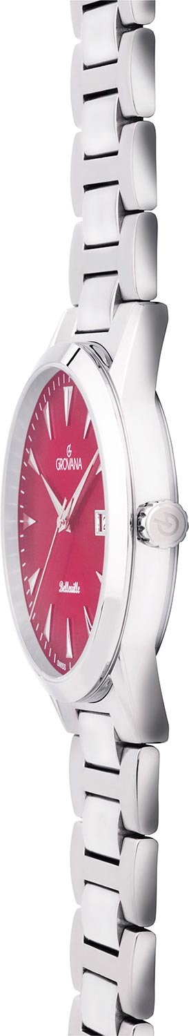 Клиновидные стрелки в стиле Dauphine. Окошко даты находится в положении 3 часа. Сапфировое стекло. Рифленая заводная головка. Стальной браслет с раскладывающейся застежкой.
