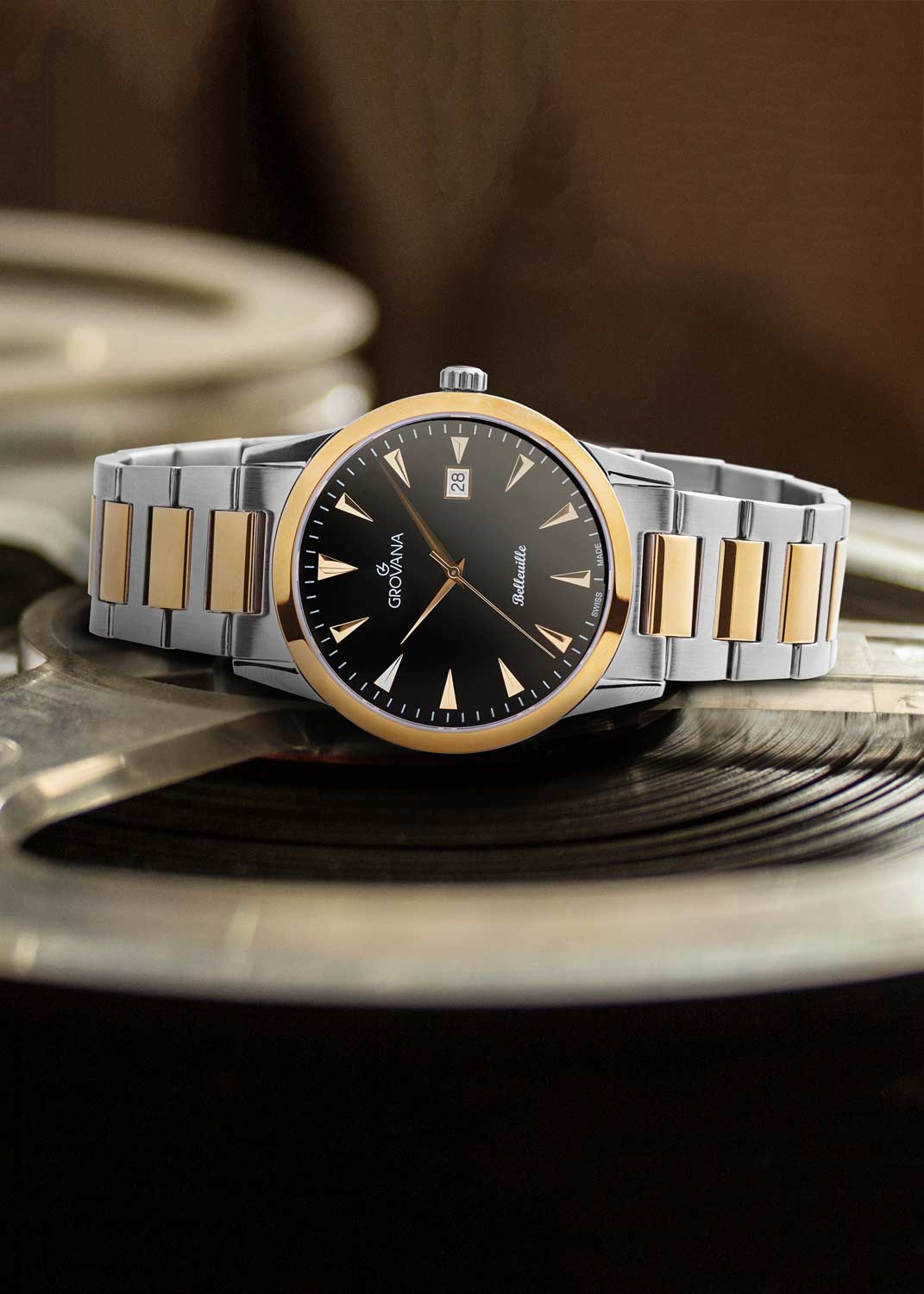 Клиновидные стрелки в стиле Dauphine. Окошко даты находится в положении 3 часа. Рифленая заводная головка. Стальной браслет с раскладывающейся застежкой.