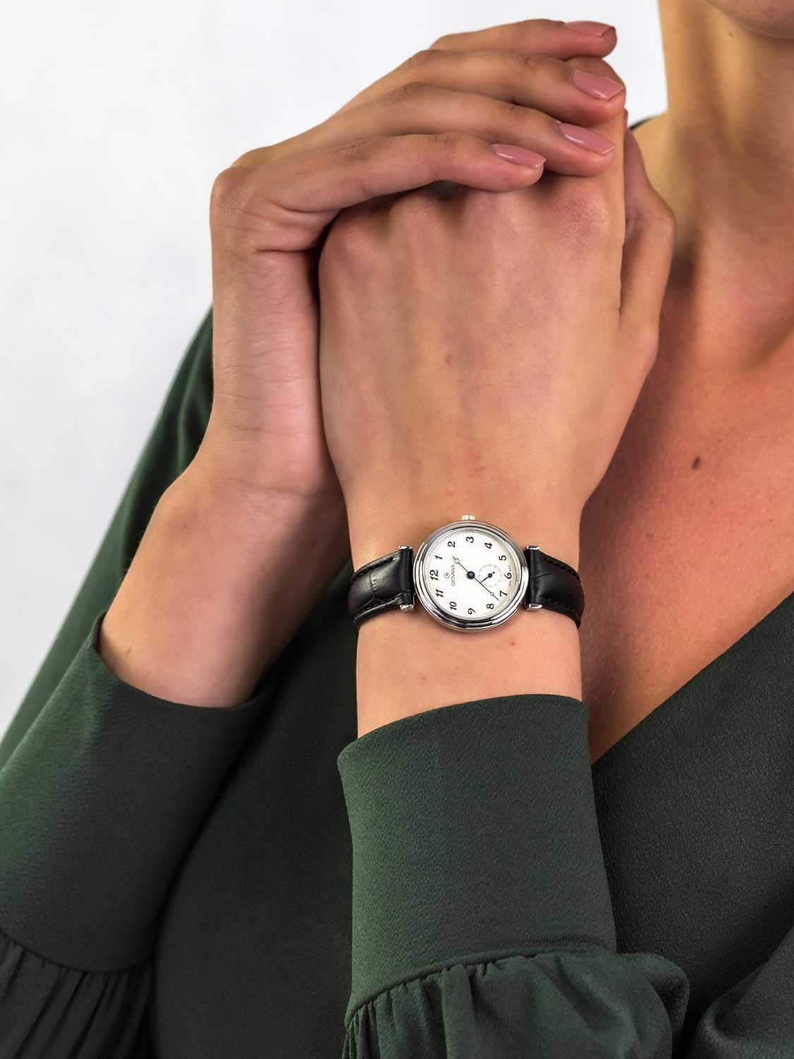 Наручные мужские классические часы. Круглый стальной корпус с двойным ободком. Гильошированный циферблат с арабскими цифрами. Стрелки в стиле Breguet. Секундная стрелка вынесена на отдельный циферблат. Сапфировое стекло. Рифленая заводная головка. Удобный кожаный ремешок. Имеется мужской вариант модели G1276.5532.