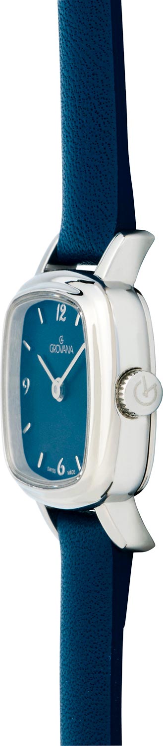 Миниатюрные женские наручные часы. Стальной корпус квадратной формы с полированной отделкой. Циферблат выполнен по технологии Sunray (солнечные лучи). Накладные метки в виде штрихов и арабских цифр. Заостренные прямоугольные стрелки в стиле Baton. Сапфировое стекло. Плоская рифленая заводная головка. Удобный кожаный ремешок.