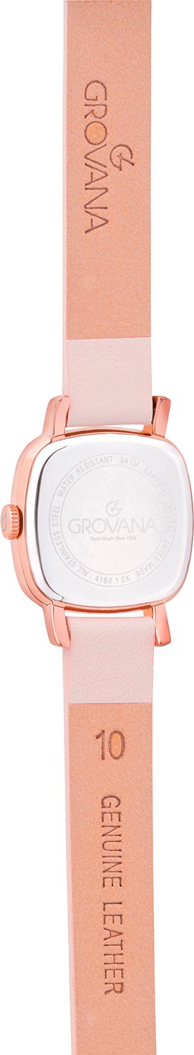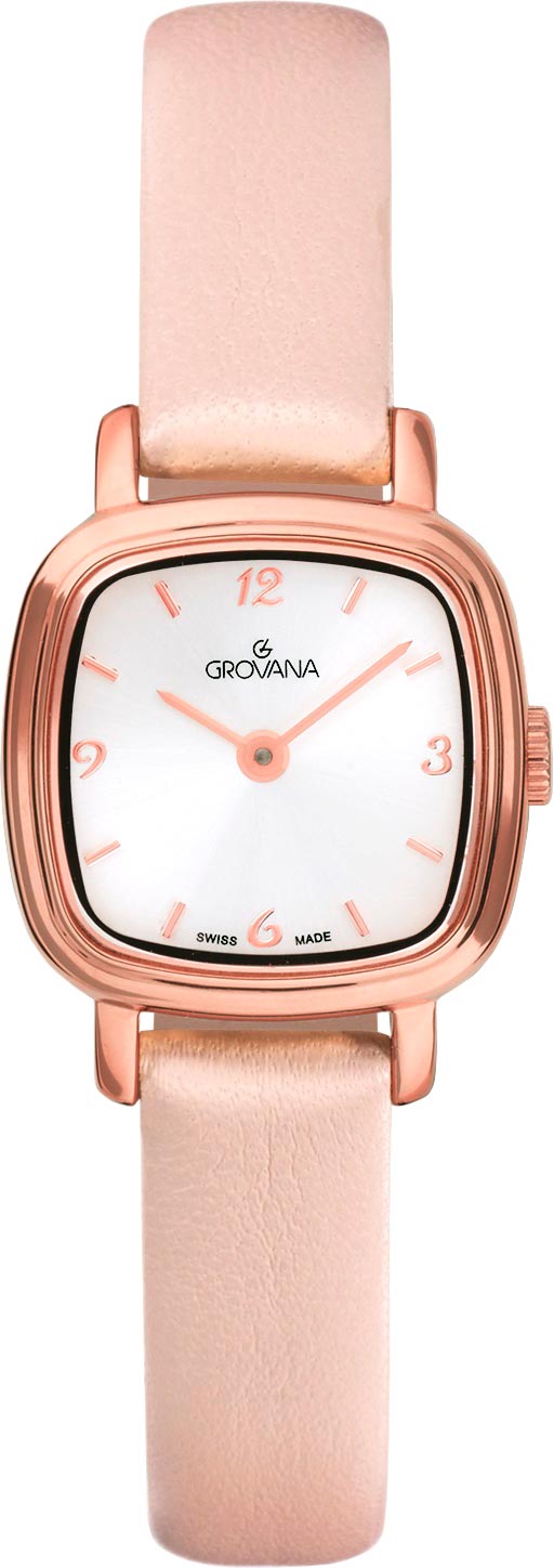 Миниатюрные женские наручные часы. Стальной корпус квадратной формы с полированной отделкой. Циферблат выполнен по технологии Sunray (солнечные лучи). Накладные метки в виде штрихов и арабских цифр. Заостренные прямоугольные стрелки в стиле Baton. Сапфировое стекло. Плоская рифленая заводная головка. Удобный кожаный ремешок.