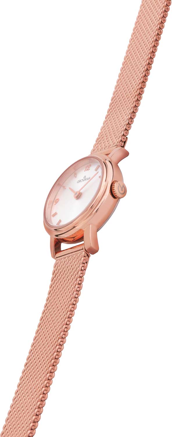 Миниатюрные женские наручные часы. Круглый стальной корпус с полированной отделкой. Циферблат выполнен по технологии Sunray (солнечные лучи) и защищен прочным сапфировым стеклом.