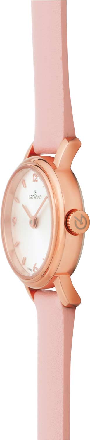 Миниатюрные женские наручные часы. Круглый стальной корпус с полированной отделкой. Циферблат выполнен по технологии Sunray (солнечные лучи) и защищен прочным сапфировым стеклом.