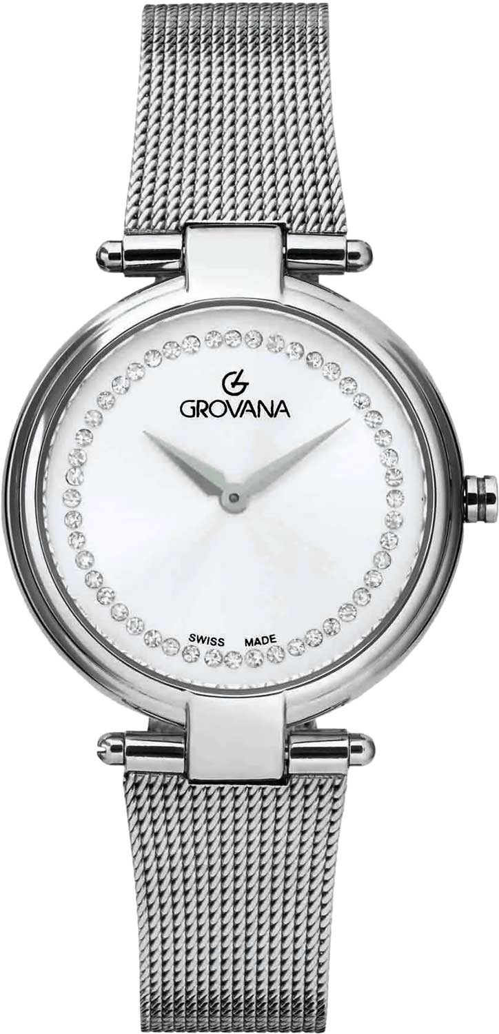 Женские наручные часы. Круглый стальной корпус. Циферблат с цирконами выполнен по технологии Sunray (солнечные лучи) и защищен прочным сапфировым стеклом. Браслет миланского плетения.