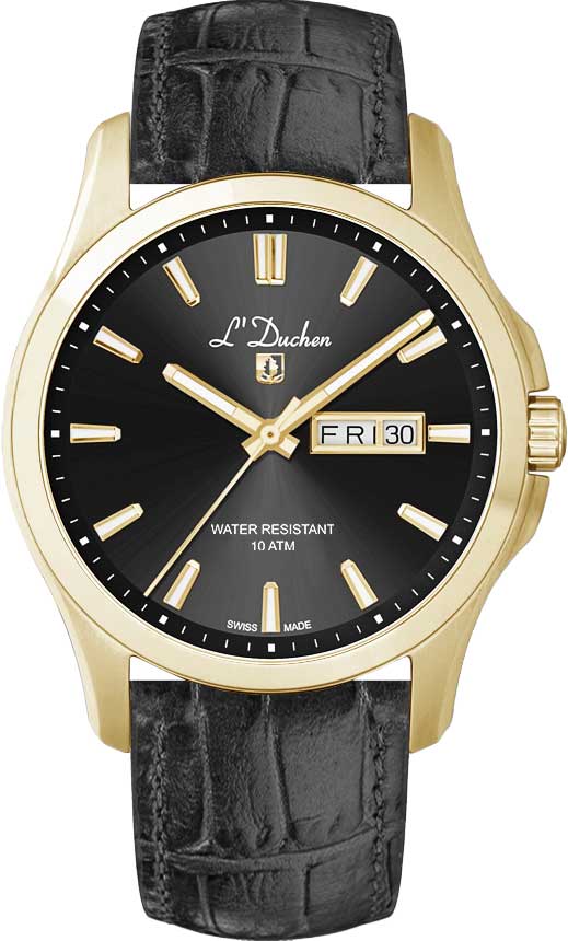 Часы от L'Duchen порадуют вас не только своим дизайном, но и швейцарским качеством и точностью. Dynamique. Мужские часы с круглым стальным корпусом. Циферблат выполнен по технологии Sunray (солнечные лучи) и украшен фирменным логотипом L'Duchen в виде дубового листа – символа мудрости и долговечности. Метки в виде штрихов. Окошко даты и дня недели находится в положении 3 часа. Заводная головка с защитой.