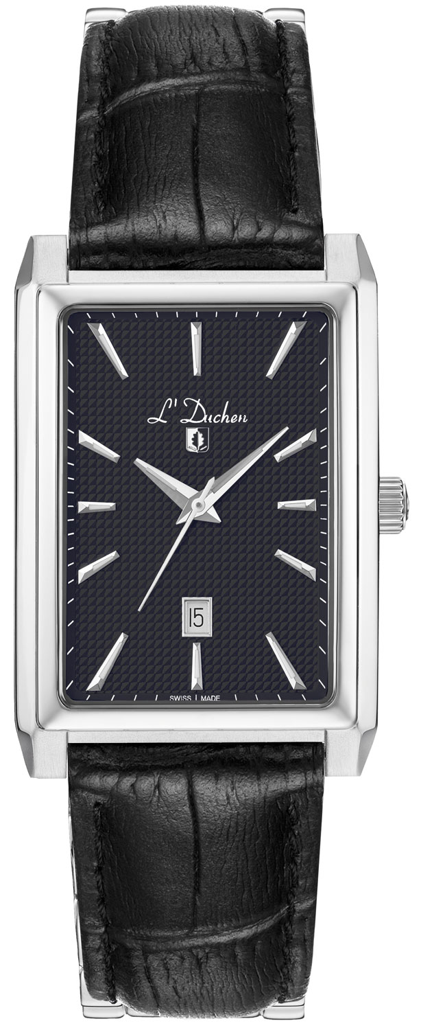 Прямоугольные мужские часы коллекции Adventure дизайнеры марки L'Duchen разработали в эргономической форме. Они удобно ложатся на руке и элегантно дополняют любой стиль одежды. Adventure. Циферблат украшен традиционным для швейцарских часов рисунком Clous de Paris («парижские гвозди»). Метки в виде штрихов. Окошко даты находится в положении 6 часов и украшено стальной окантовкой. Рифленая заводная головка. Удобный и надежный кожаный ремешок.