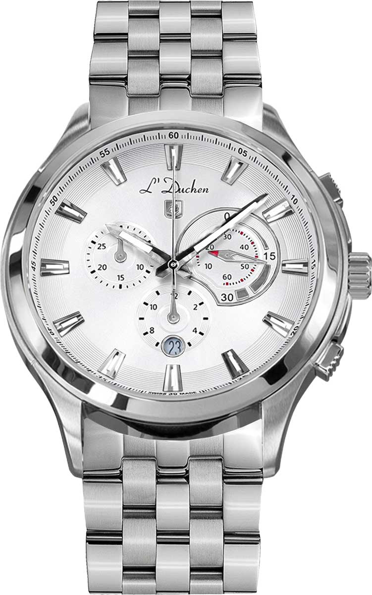 Функциональный циферблат в элегантном исполнении отразит безупречный стиль делового мужчины. Часы-хронограф с секундомером Pilotage. Циферблат с накладными метками в виде штрихов украшен фирменной надписью L'Duchen и узнаваемым логотипом в форме дубового листа, символизирующего мудрость и долголетие. Окошко даты находится в положении 6 часов. Завинчивающаяся задняя крышка. Литой браслет с раскладывающейся застежкой.