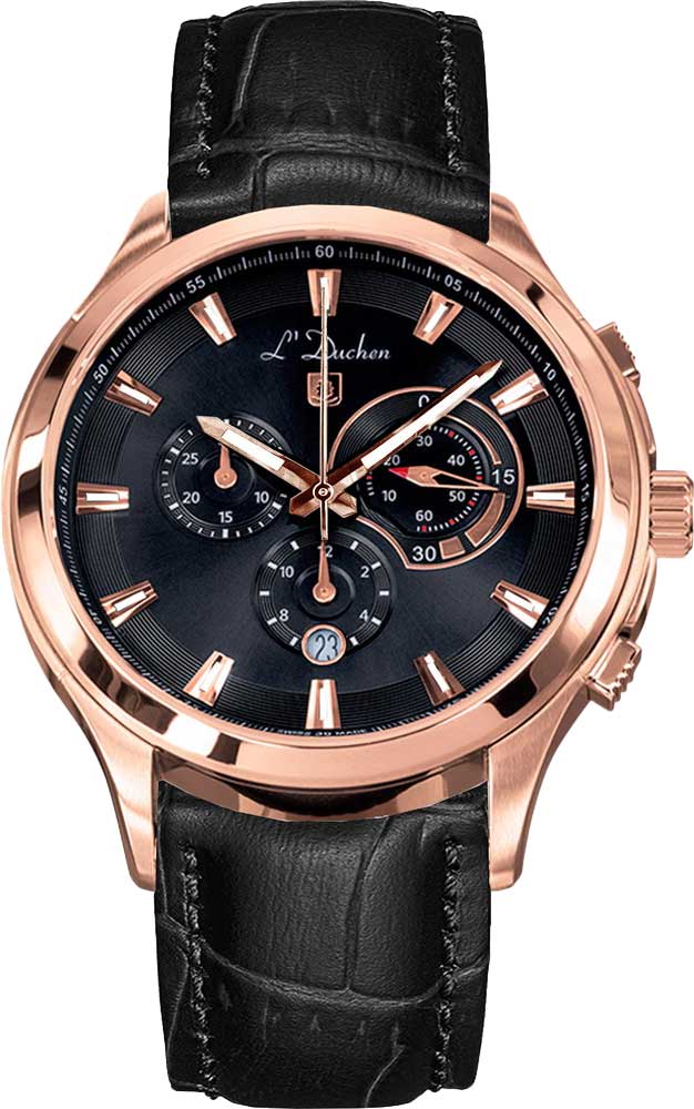 Функциональный циферблат в элегантном исполнении отразит безупречный стиль делового мужчины. Часы-хронограф с секундомером Pilotage. Циферблат выполнен по технологии Sunray (солнечные лучи) и украшен фирменной надписью L'Duchen и узнаваемым логотипом в форме дубового листа, символизирующего мудрость и долголетие. Накладные метки в виде штрихов. Окошко даты находится в положении 6 часов. Завинчивающаяся задняя крышка. Ремешок с раскладывающейся застежкой.