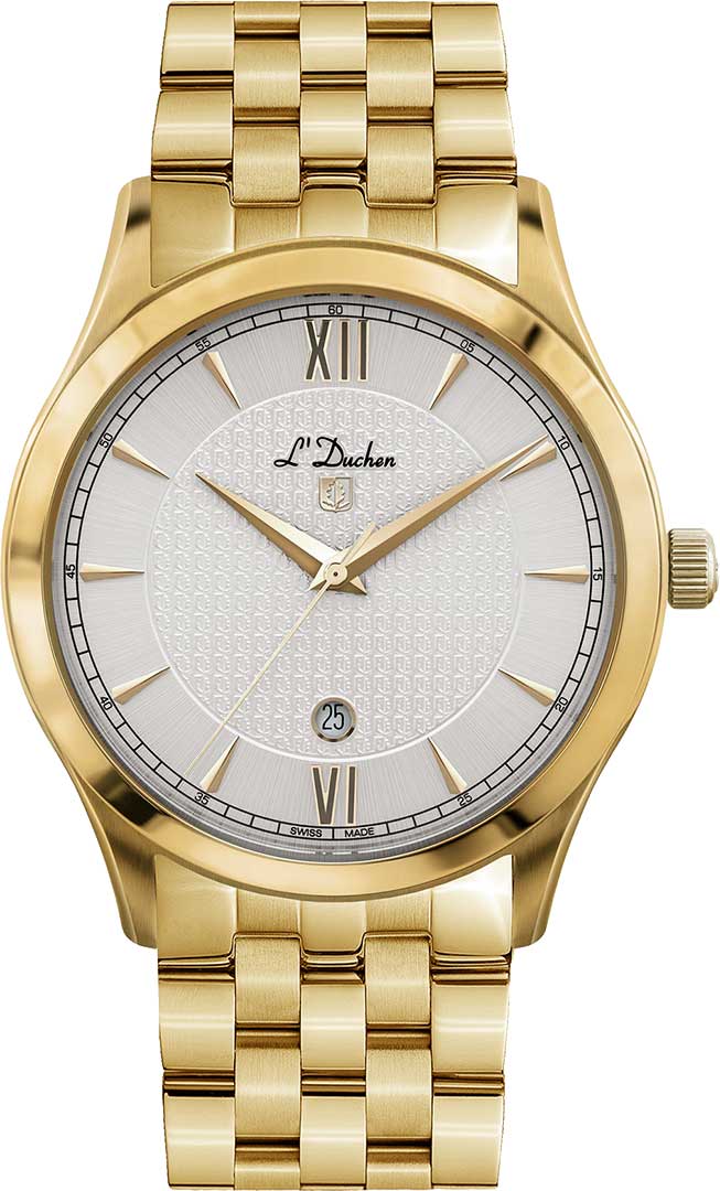 Стильный аксессуар с классическими нотками, каждая деталь которого создана в лучших традициях многовекового часового искусства. Время для успешных мужчин. Carcassonne. Мужские часы с круглым стальным корпусом. Циферблат украшен фирменным логотипом L'Duchen и декоративным узором гильоше в форме дубового листа, символизирующего мудрость и долголетие. Метки в виде штрихов и двух римских цифр. Окошко даты находится в положении 6 часов. Рифленая заводная головка. Браслет с раскладывающейся застежкой.