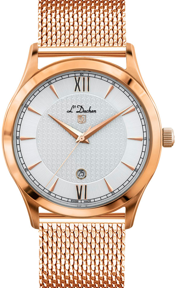 Стильный аксессуар с классическими нотками, каждая деталь которого создана в лучших традициях многовекового часового искусства. Время для успешных мужчин. Carcassonne. Мужские часы с круглым стальным корпусом. Циферблат украшен фирменным логотипом L'Duchen и декоративным узором с паттерном в форме дубового листа, символизирующего мудрость и долголетие. Метки в виде штрихов и римских цифр 6, 12. Окошко даты находится в положении 6 часов. Рифленая заводная головка. Браслет миланского плетения.